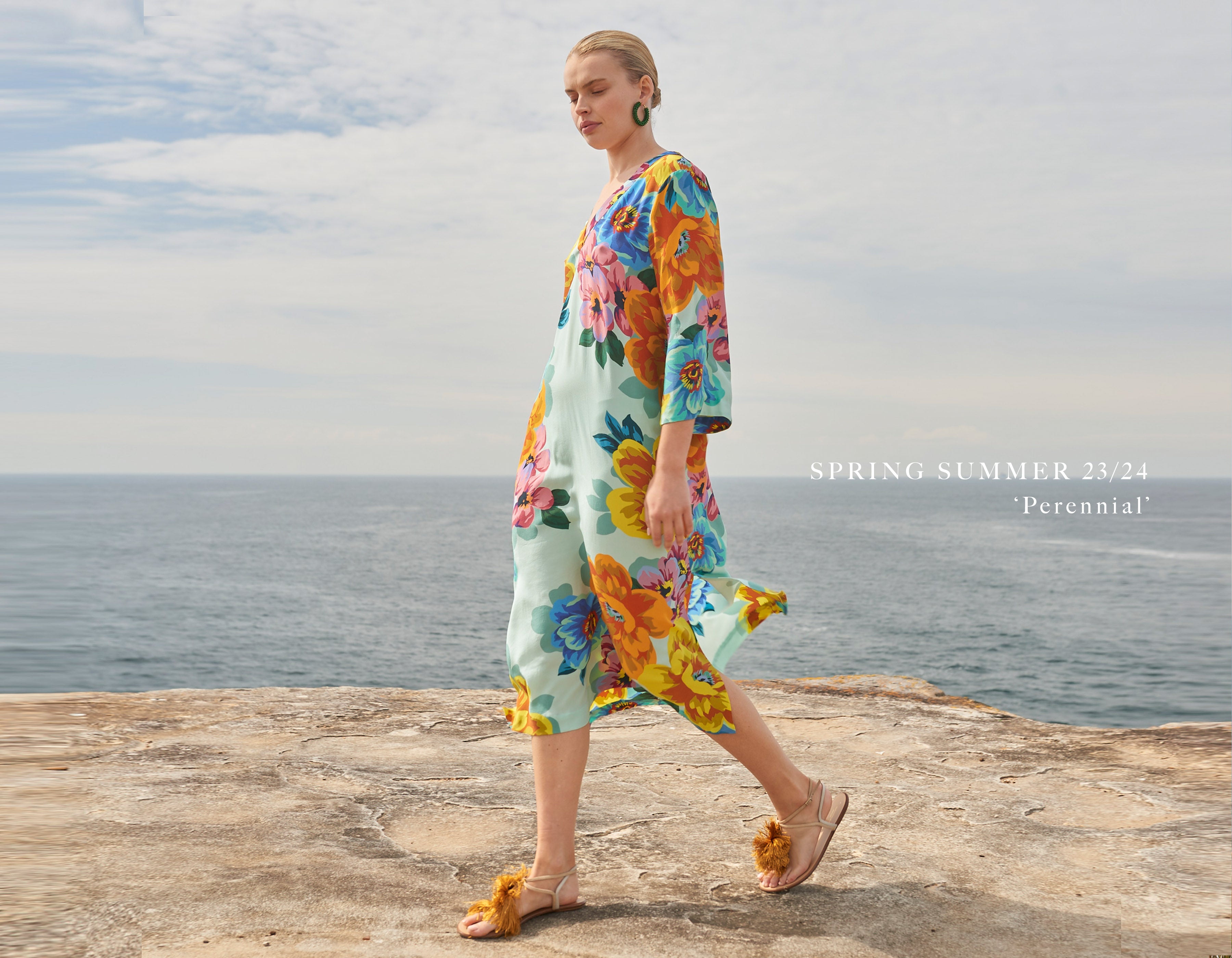 A luminous return to joy. Spring Summer 25 welcomes a renewal of lightness, wrapped up in folkloric prints, earth tones that blossom into vibrant sun-drenched hues, and the memories of long, unhurried summers. This season, vintage island florals and stylised motifs are reimagined through modern geometrics, airy blooms, hand-crochet edges and textured embroidery.