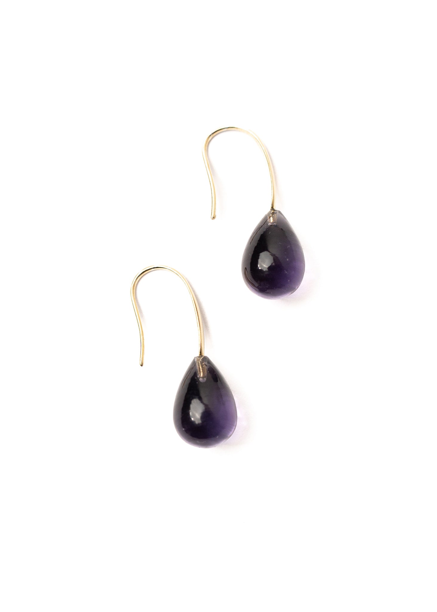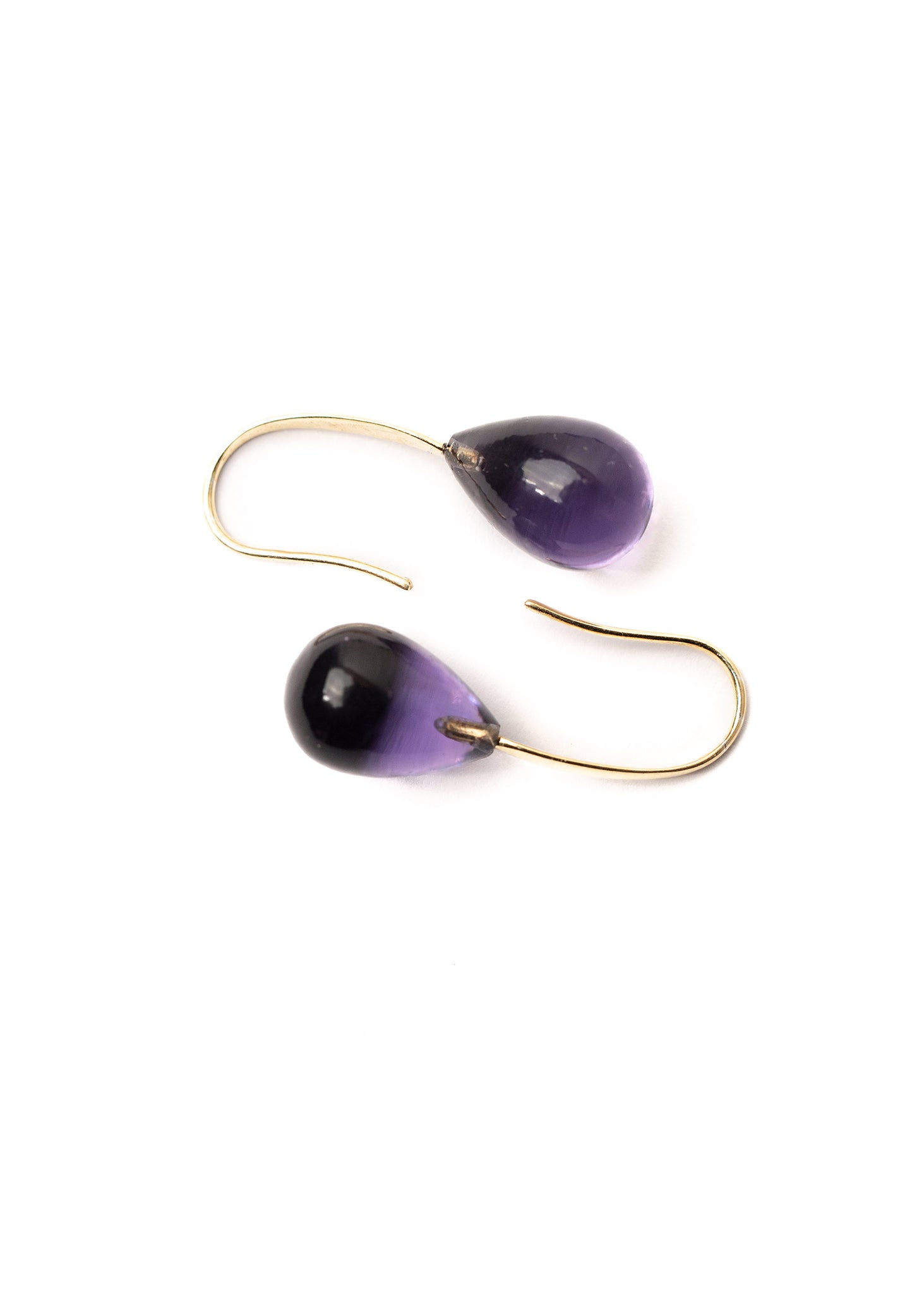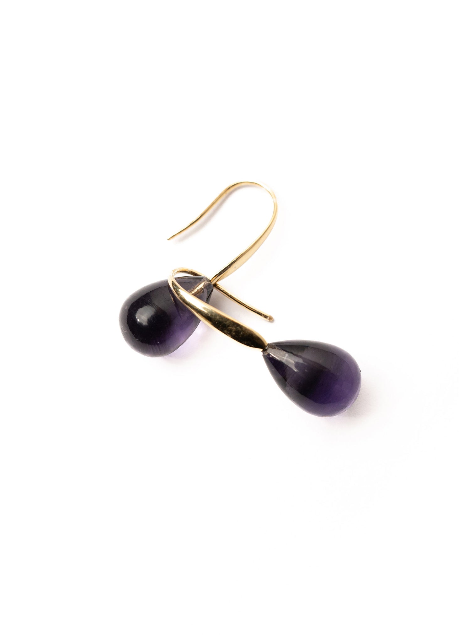 Radiant in violet, the Amethyst Teardrop Earrings combine elegance with quiet symbolism. The polished, transparent crystal drop is celebrated for its calming and protective qualities, long associated with clarity of mind and inner balance. Suspended from handcrafted golden hooks, each earring is created in Jaipur, the gemstone capital of the world, blending artisanal tradition with modern refinement.