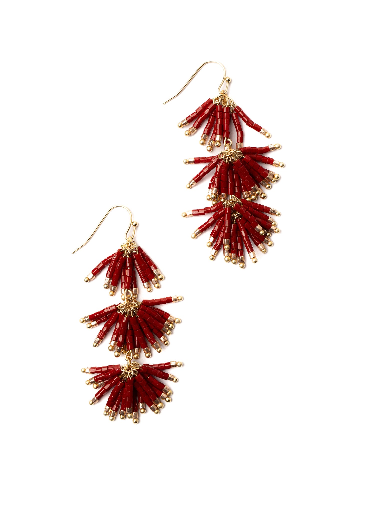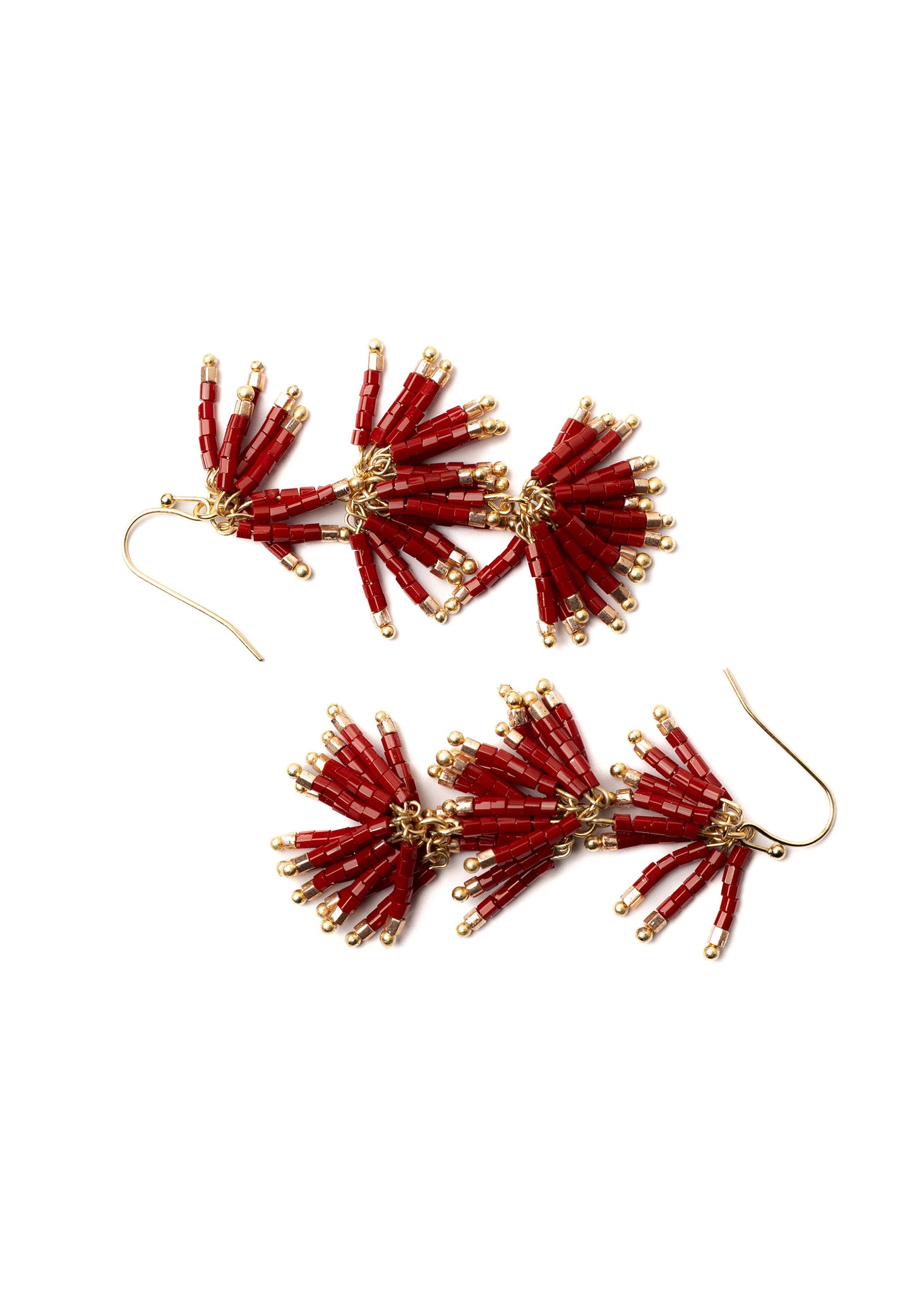 Deep garnet red Japanese glass beads tipped with gold create a refined yet vibrant accent for summer dressing. Lightweight and full of movement, the Garnet Seed Bead Earrings transition beautifully from day to evening — an elegant pop of colour to treasure or to gift this season.