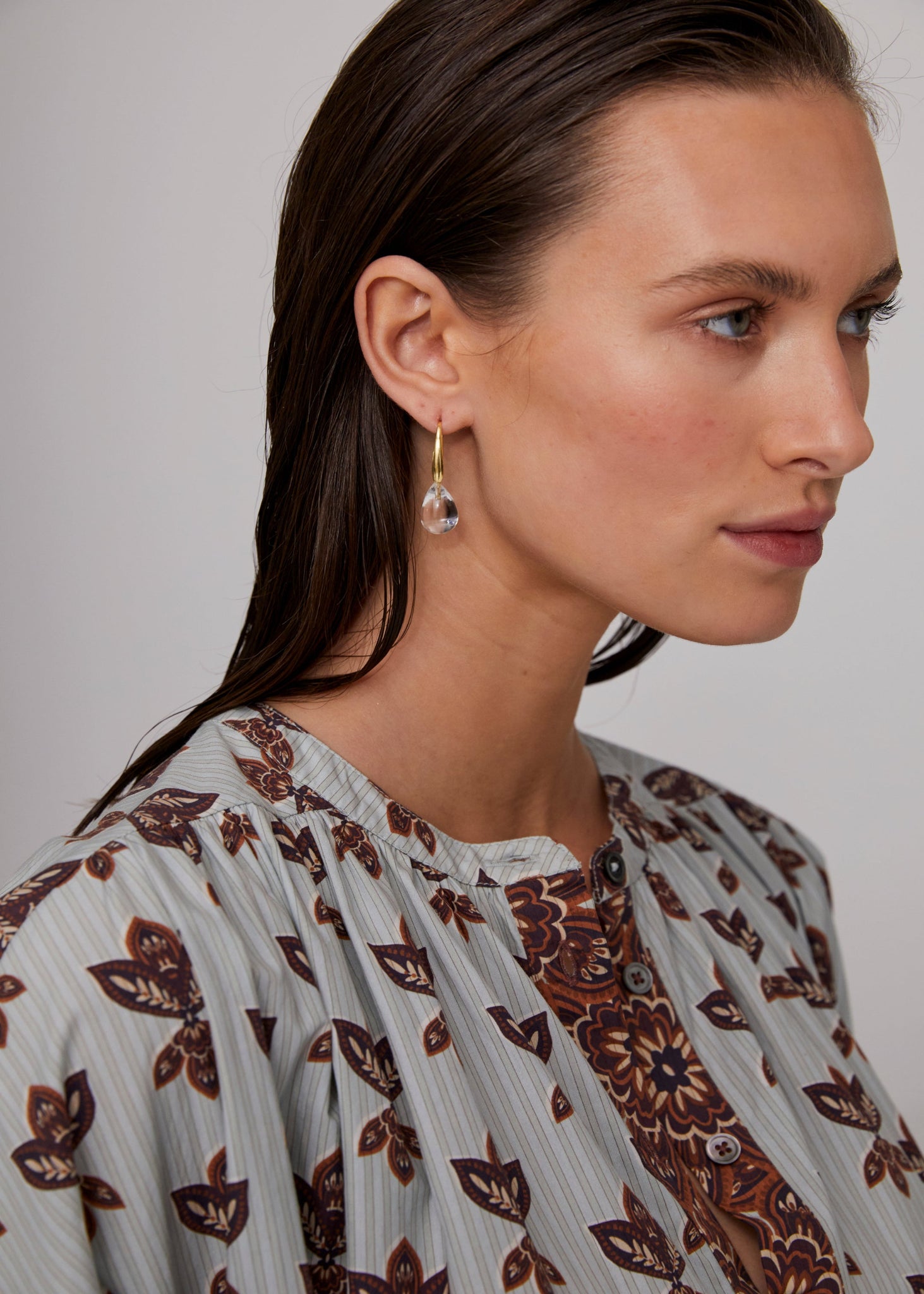 To be adored for their elegant simplicity, the Quartz Teardrop Earrings feature a polished pear-cut quartz which suspends from a hand-crafted golden hook. Created in Jaipur, renowned as the gemstone capital of the world, these earrings reflect artisanal craftsmanship with modern refinement. Timeless and feminine, they make a thoughtful gift - for yourself or someone special.