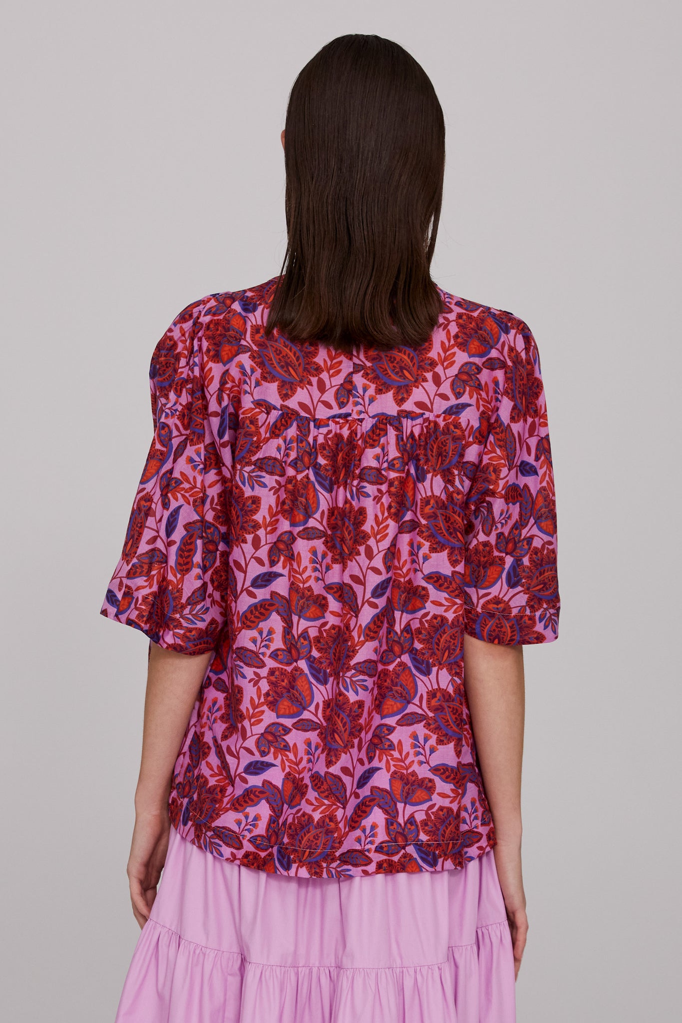 A feminine update for your summer wardrobe, the Ariana Silk Cotton Top is both pretty and versatile. Style it tucked into denim for effortless ease or pair with the Pink Poplin Tiered Skirt for a full MEGAN PARK signature look. Crafted in silk cotton voile with a soft sheen, it feels light and airy while offering subtle volume and relaxed drape.