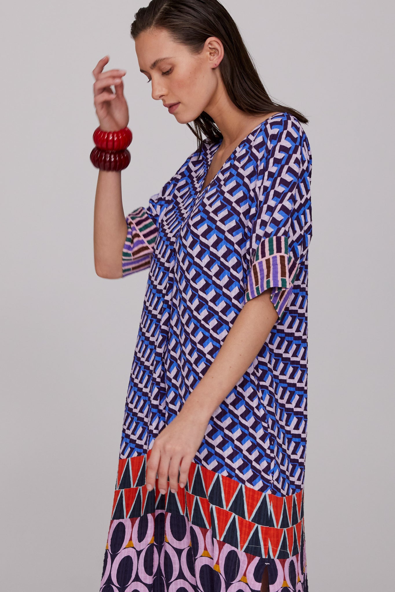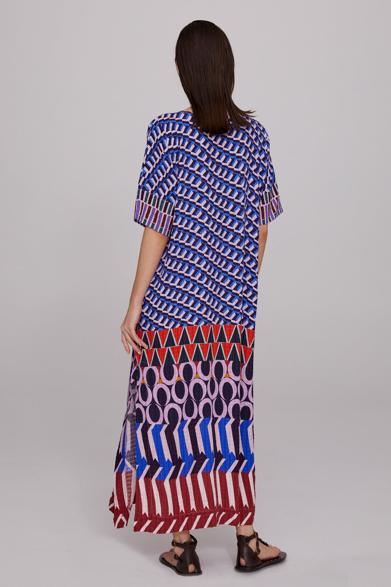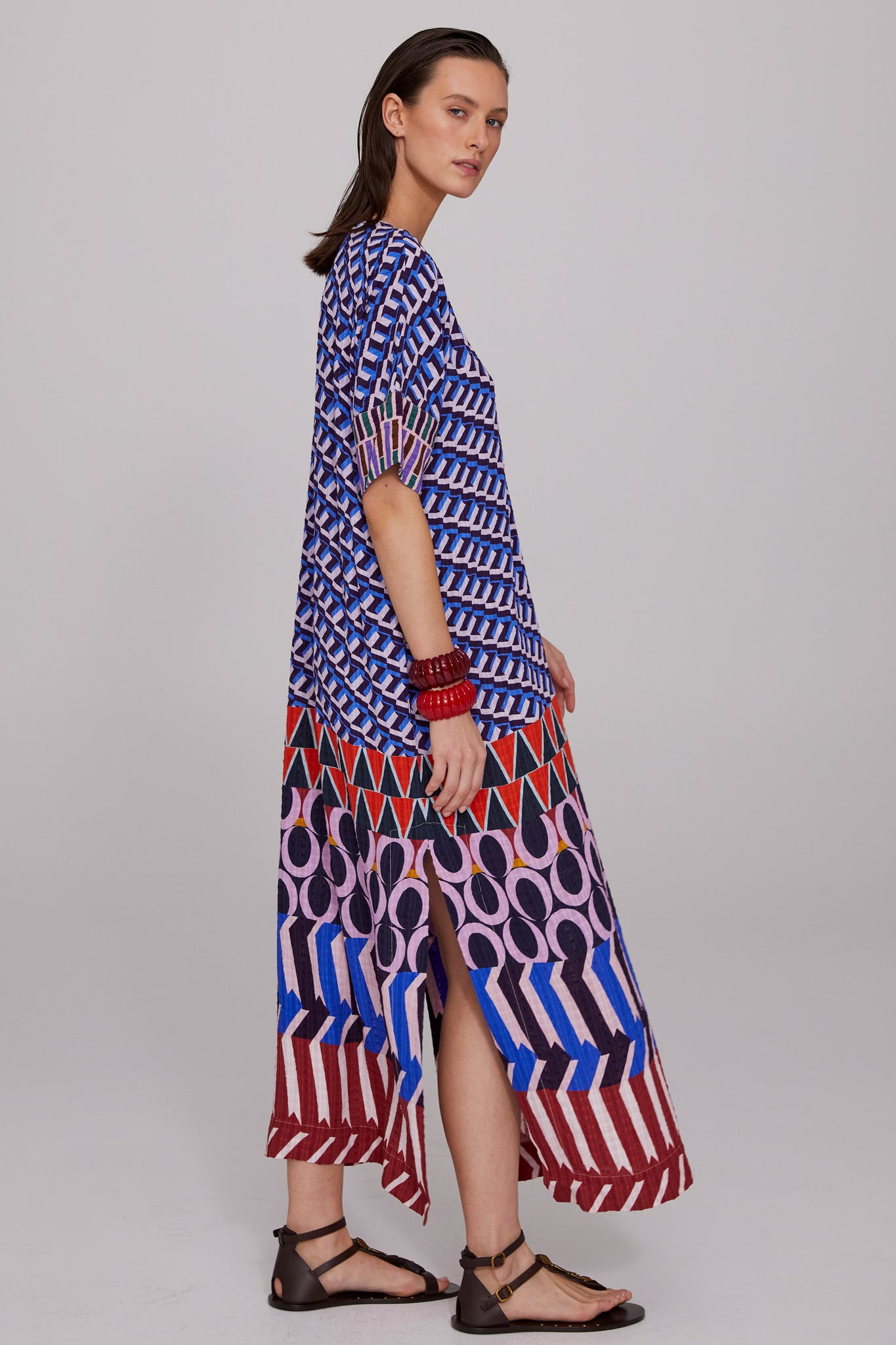 Perfect for poolside cocktails or an evening resort date, the Zuri Midi Kaftan is a striking addition to your summer wardrobe. Designed in-house at MEGAN PARK, its dynamic multi-coloured geometric print brings bold energy to the relaxed silhouette. Crafted from soft textural crepe, the kaftan drapes with ease while high side splits create fluid movement and a glimpse of leg as you walk. Effortless yet elevated, it’s a piece you’ll treasure for summers to come. Layer with beads and bangles to amplify this high resort look.