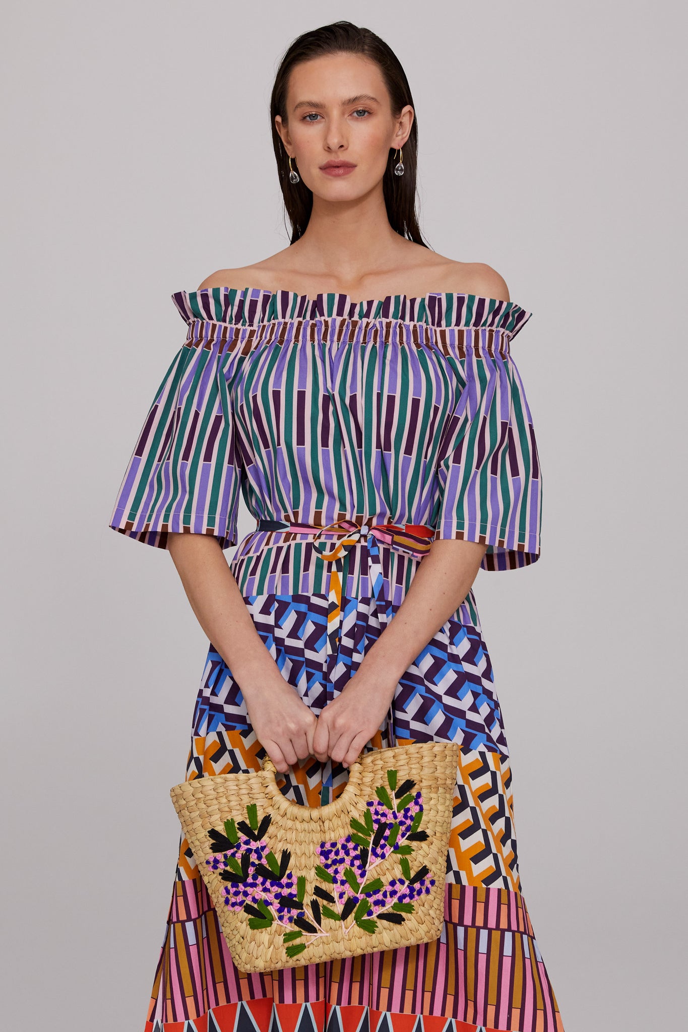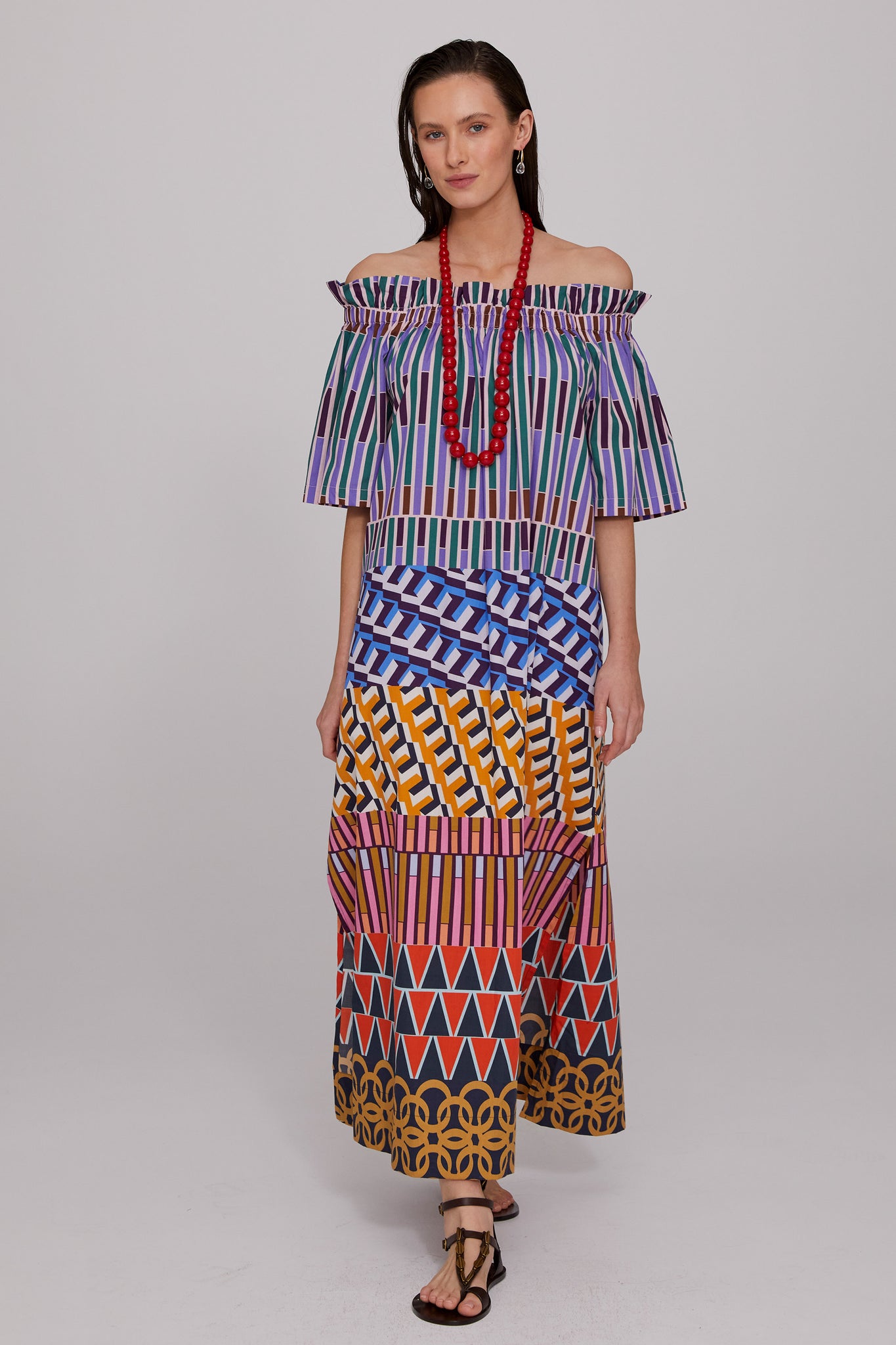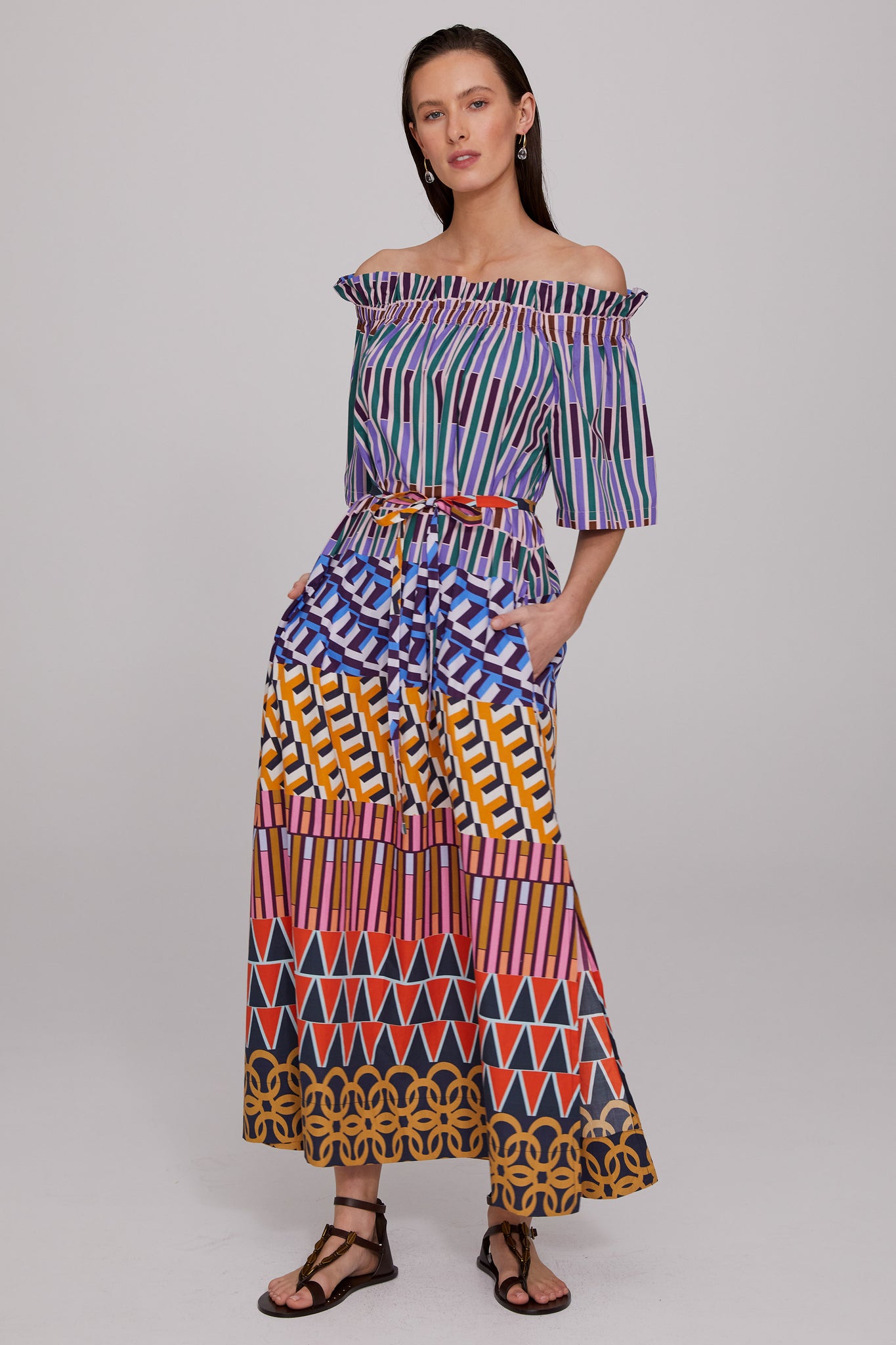 The Zuri Poplin Mu Mu Dress makes a bold statement with MEGAN PARK’s signature geometric print in vibrant multi-colours. Cut from crisp cotton poplin, its elasticated neckline can be styled off the shoulder or worn relaxed for ease. Perfect for the festive season or a resort getaway, it transitions effortlessly — dress up with heels and earrings or pare back with flat slides. The relaxed silhouette with side seam splits creates movement, while the optional narrow belt offers a cinched finish.