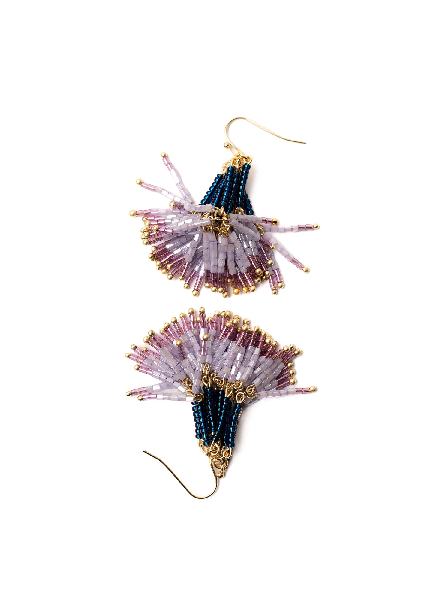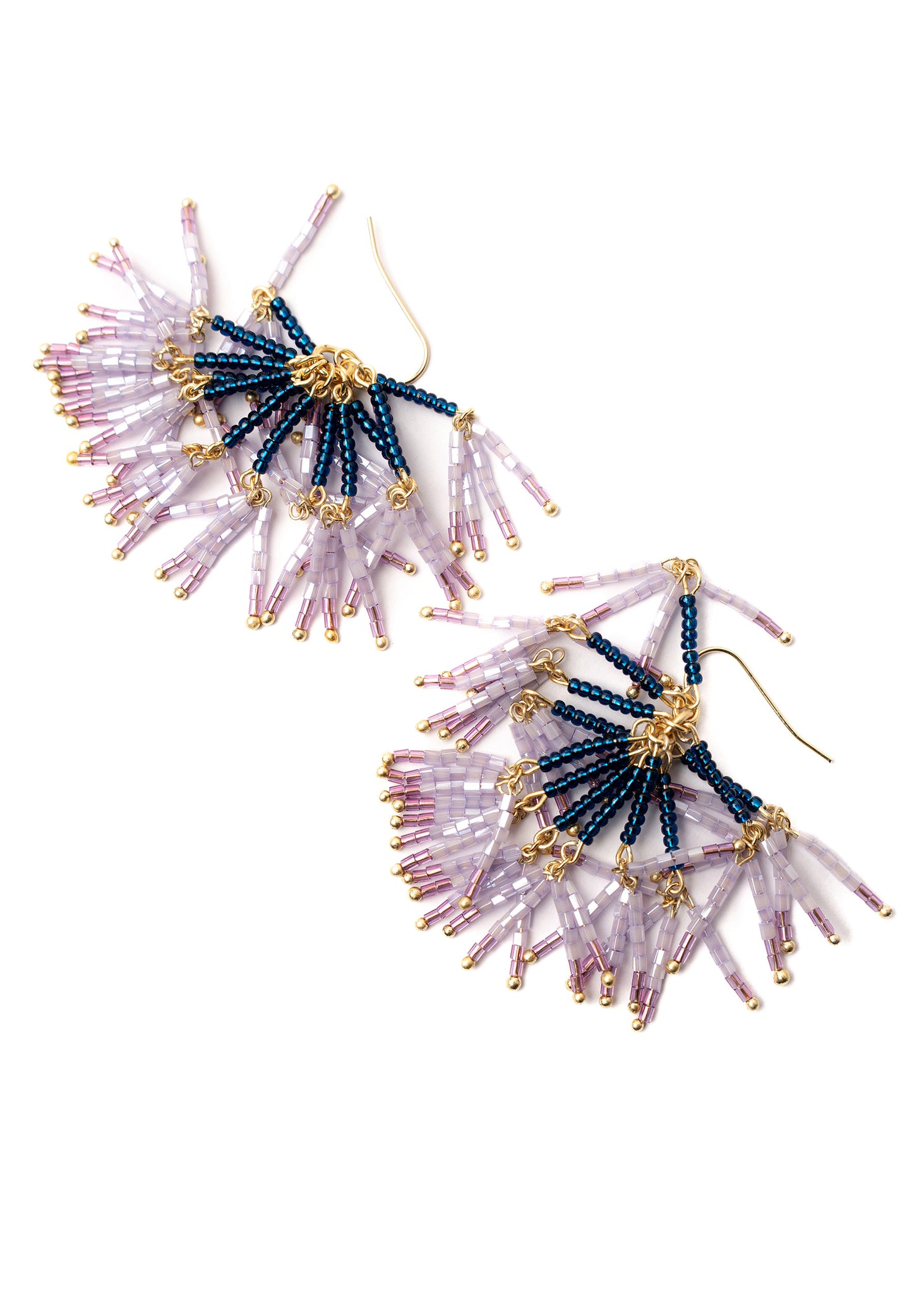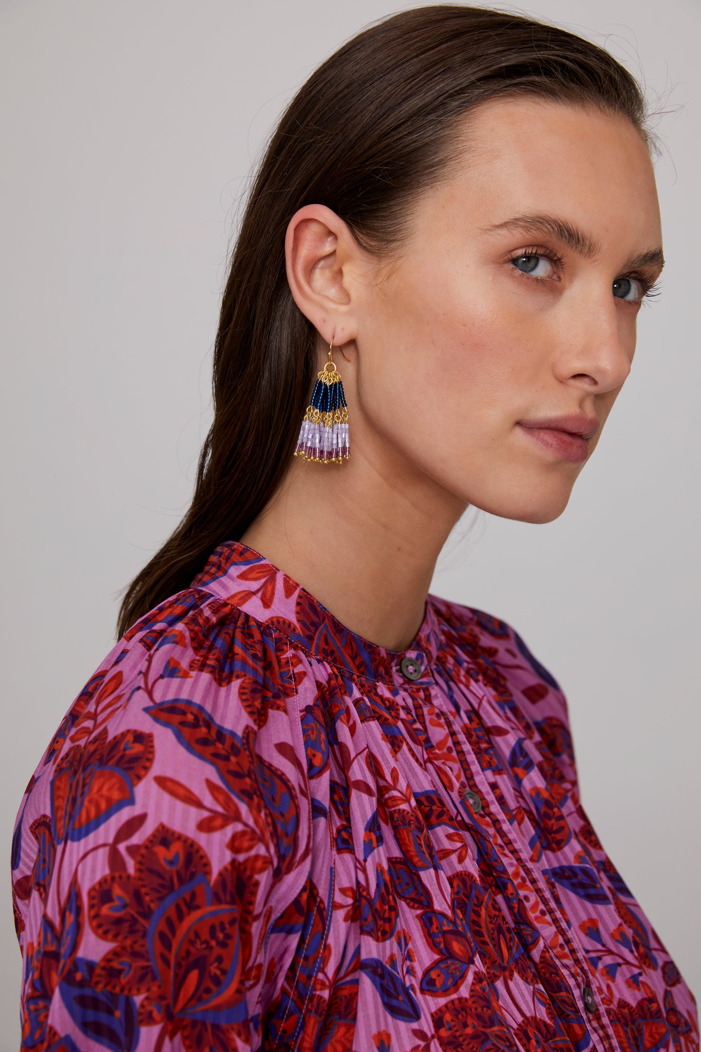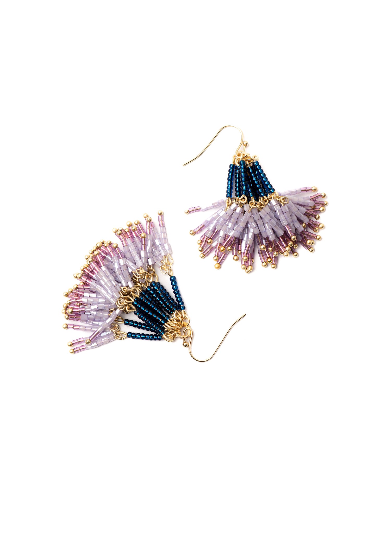 Tasselled clusters of midnight blue, iced lilac, and bronze Japanese glass beads shimmer with every movement. Lightweight and refined, these jewels capture the carefree elegance of summer days and the glimmer in the evening light. Lightweight, feminine, and timeless — jewels to treasure or to gift.