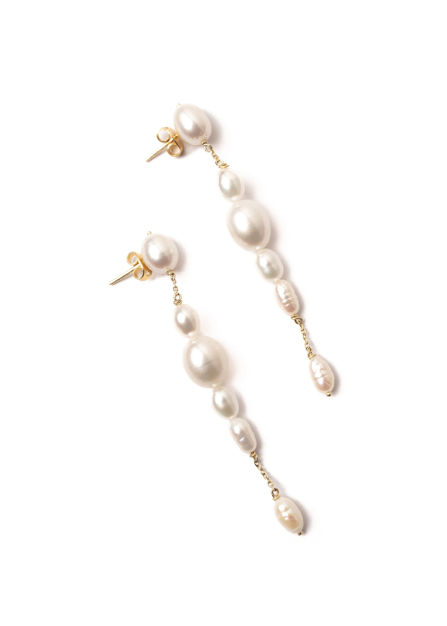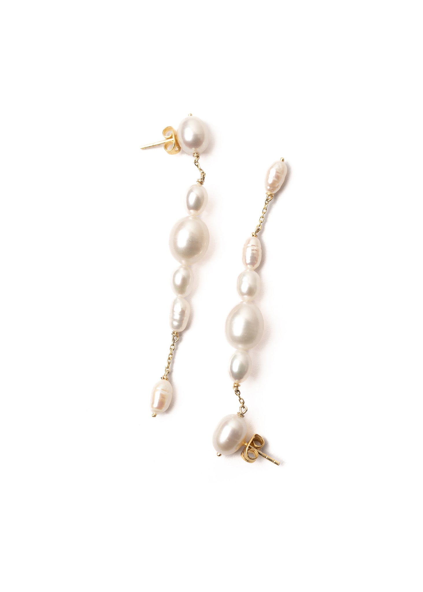 Refined and striking, the Freshwater Pearl & Chain Drop Earrings feature lustrous freshwater pearls linked with a fine golden chain, creating a fluid drop that moves beautifully with every step. Each pearl is carefully chosen for its natural glow, while the elongated silhouette brings a modern twist to timeless elegance. Handcrafted in Jaipur, these earrings bring modern sophistication to an evening ensemble this summer and beyond.