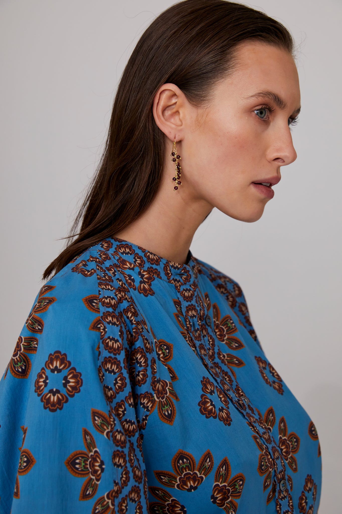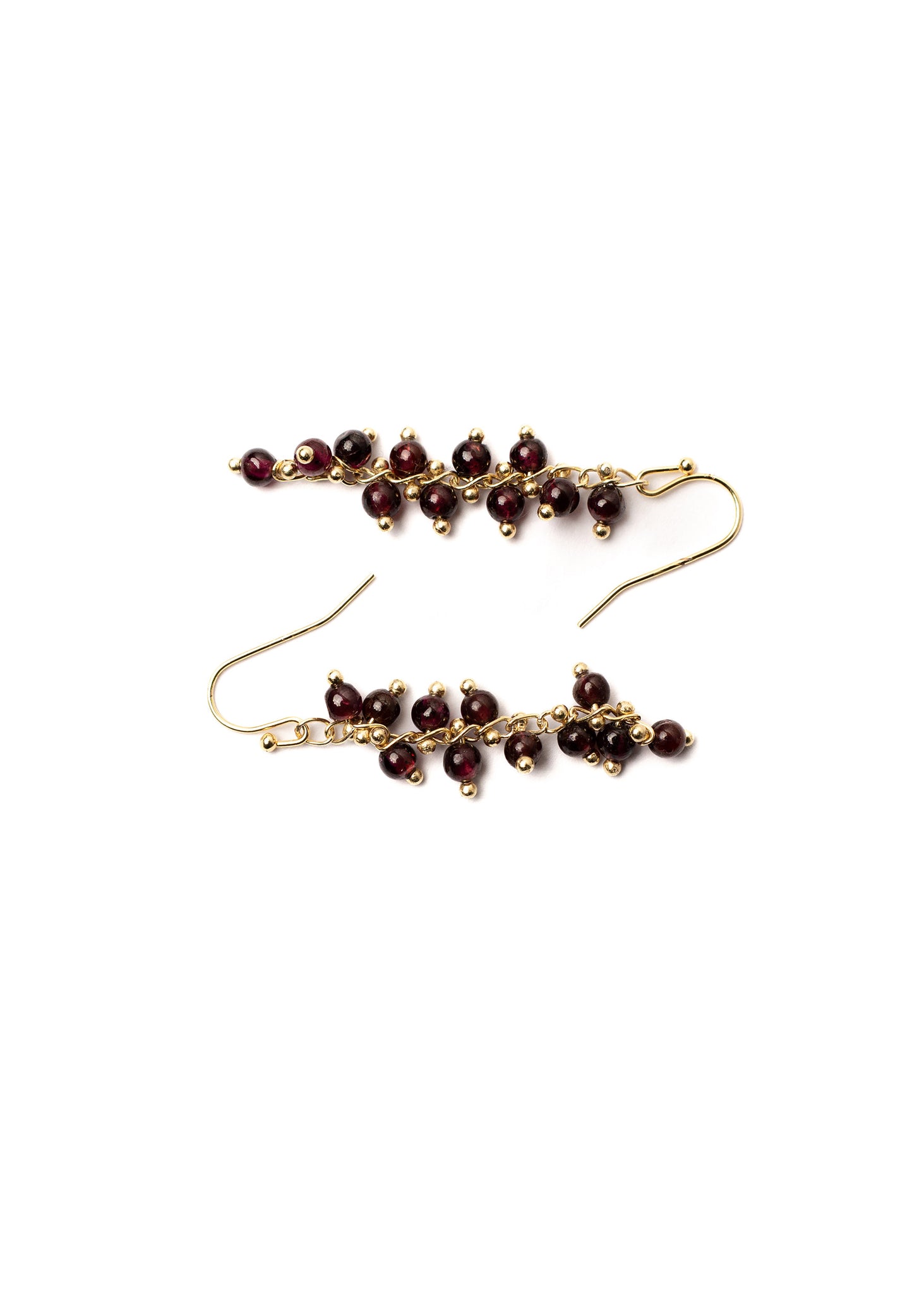 A cascade of ruby-red garnets glimmers along a fine 24ct gold chain, forming the elegant Garnet Droplet Earrings. Lightweight and refined, they bring effortless movement and a touch of femininity to any look. Designed to transition seamlessly from day to evening, these timeless earrings are destined to be cherished for years to come.