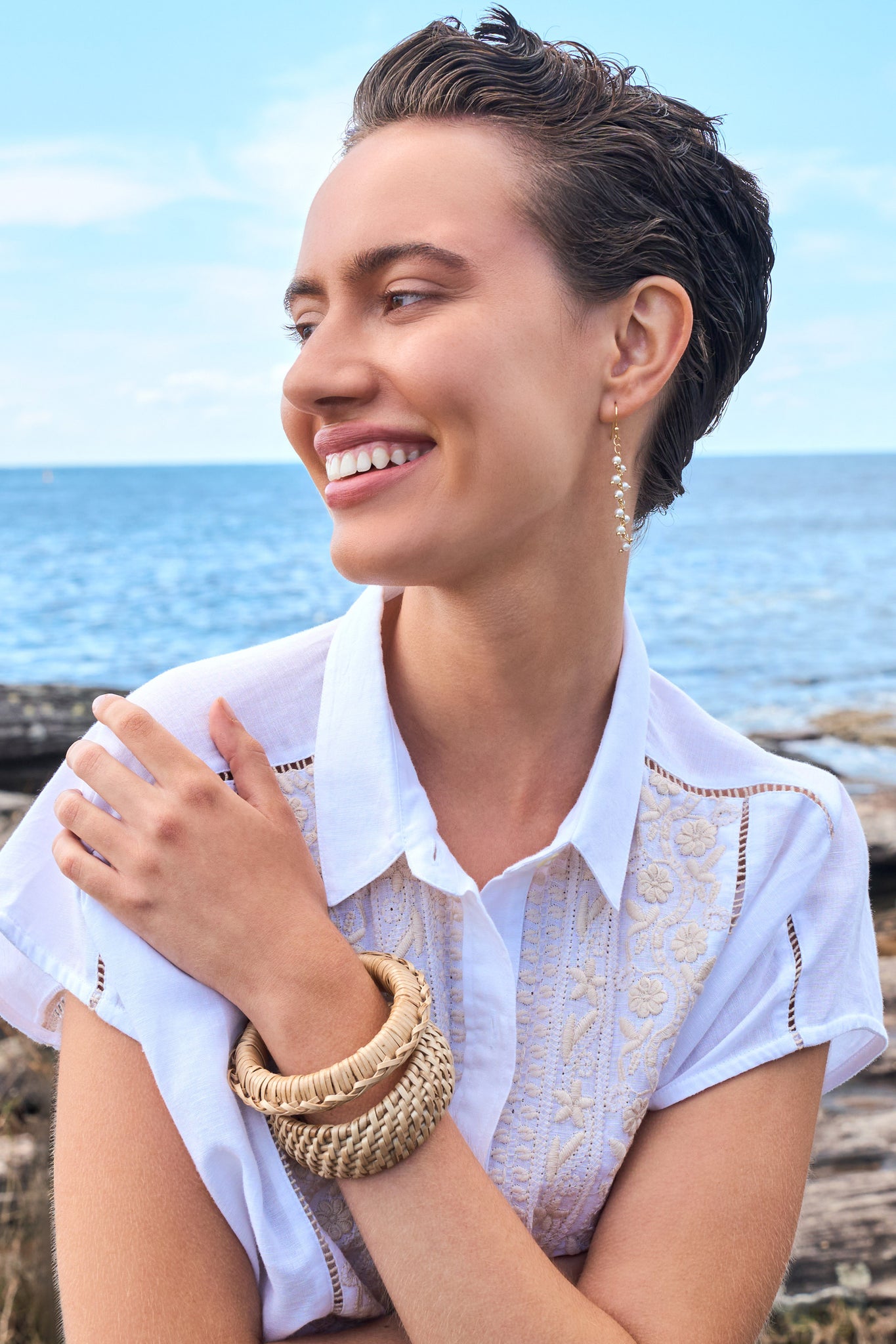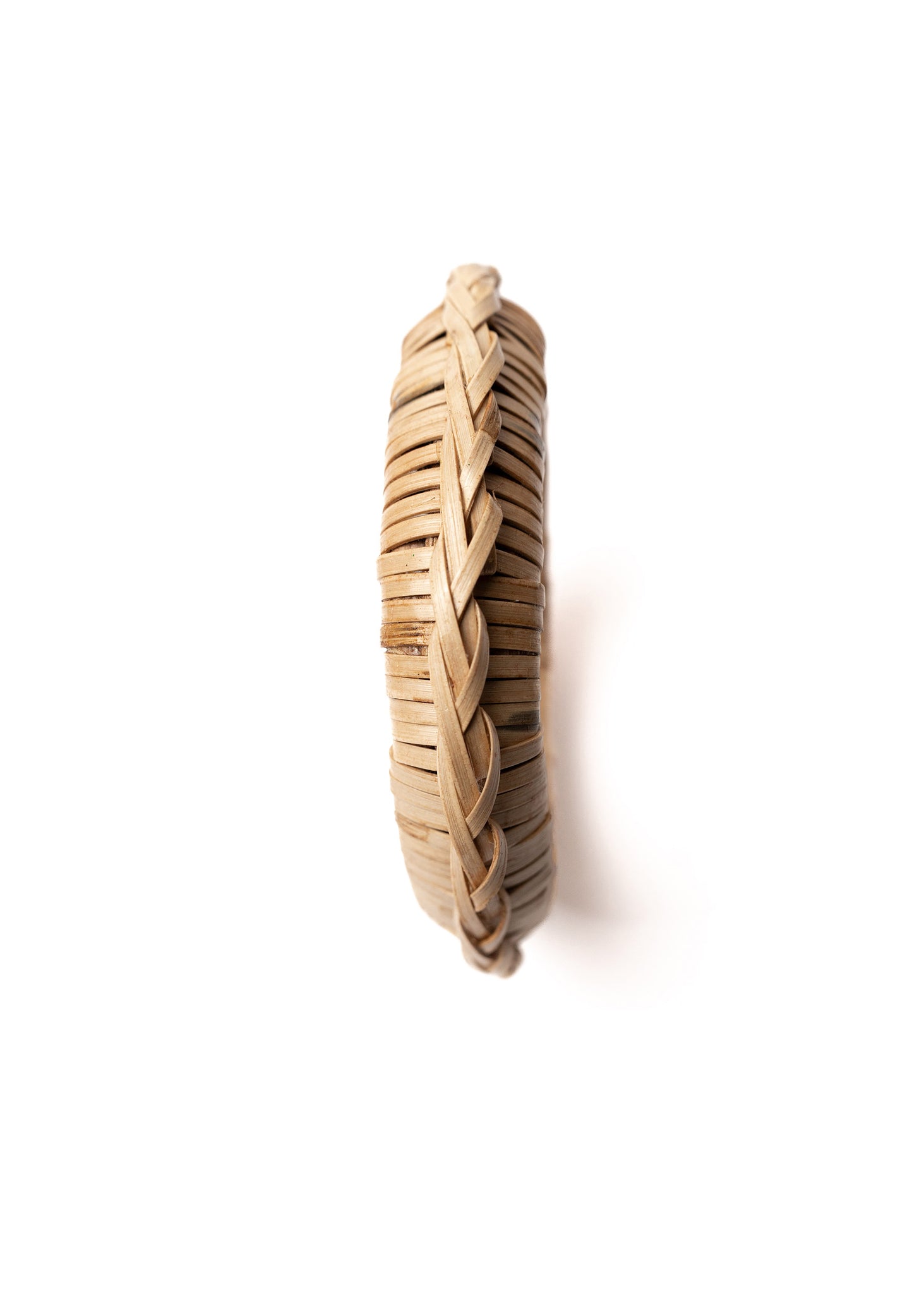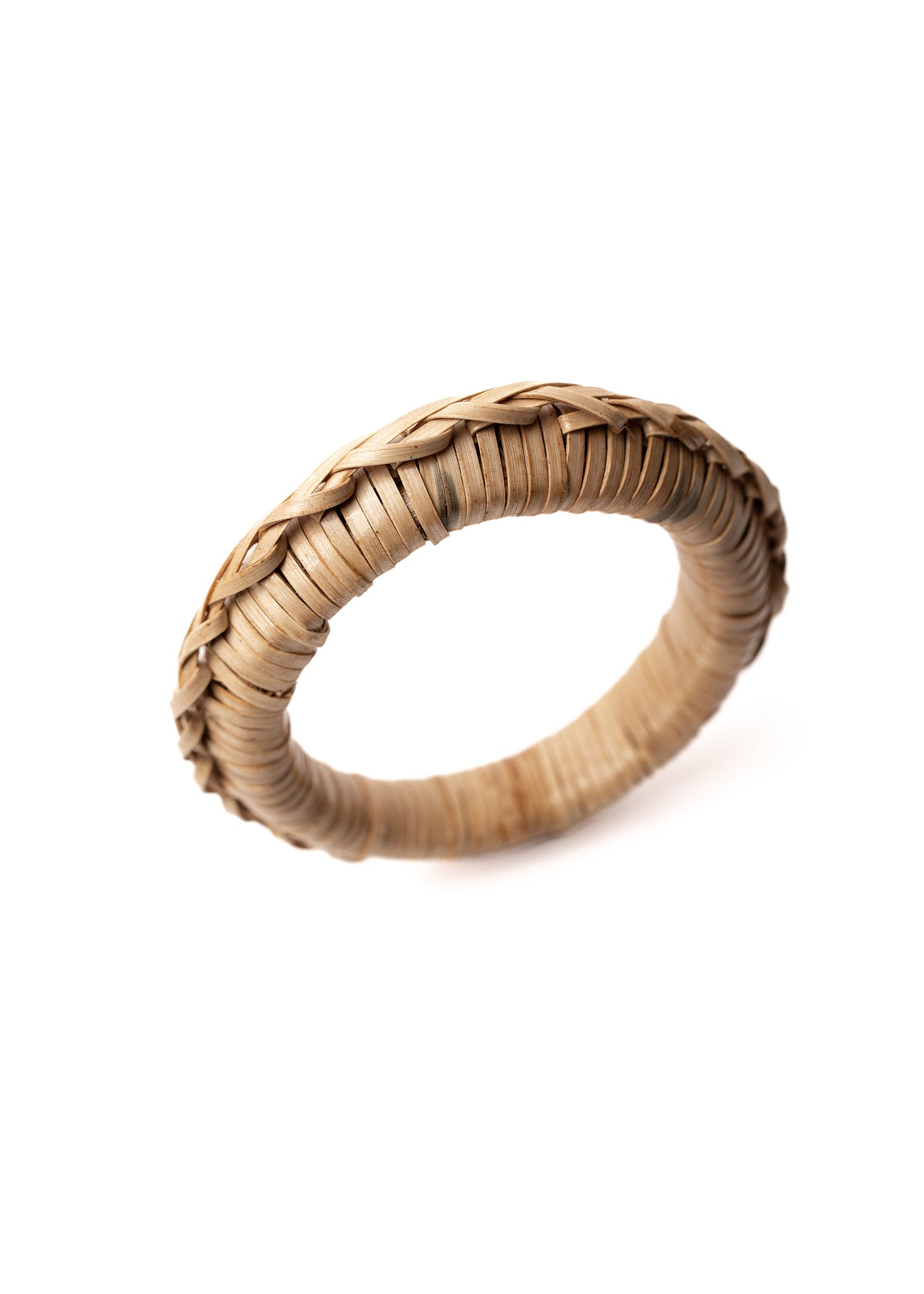 Handwoven by a women’s co-operative in Manipur, in India’s far northeast, this artisanal bangle is crafted from Kouna grass — a natural water reed that is carefully harvested, dried, and woven by hand. Lightweight and beautifully tactile, each piece carries the subtle variations that speak to its maker’s touch. Both ethical and environmentally conscious, this bangle is not only a beautiful summer accessory but also a symbol of empowerment — supporting the preservation of traditional tribal crafts while uplifting the women who create them.