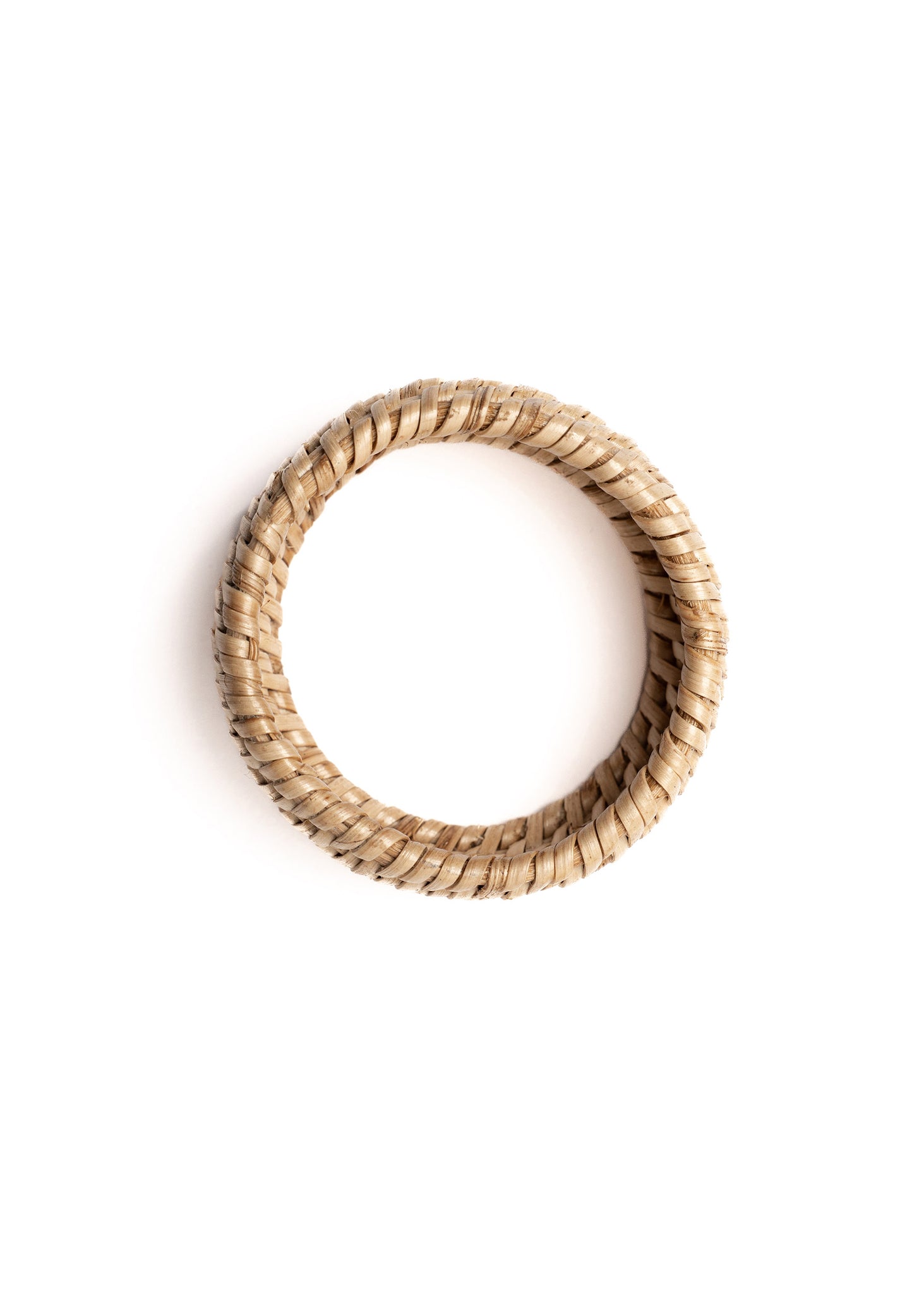 Handwoven by a women’s co-operative in Manipur, in India’s far northeast, this artisanal bangle is crafted from Kouna grass — a natural water reed that is carefully harvested, dried, and woven by hand. Lightweight and beautifully tactile, each piece carries the subtle variations that speak to its maker’s touch. Both ethical and environmentally conscious, this bangle is not only a beautiful summer accessory but also a symbol of empowerment — supporting the preservation of traditional tribal crafts while uplifting the women who create them.
