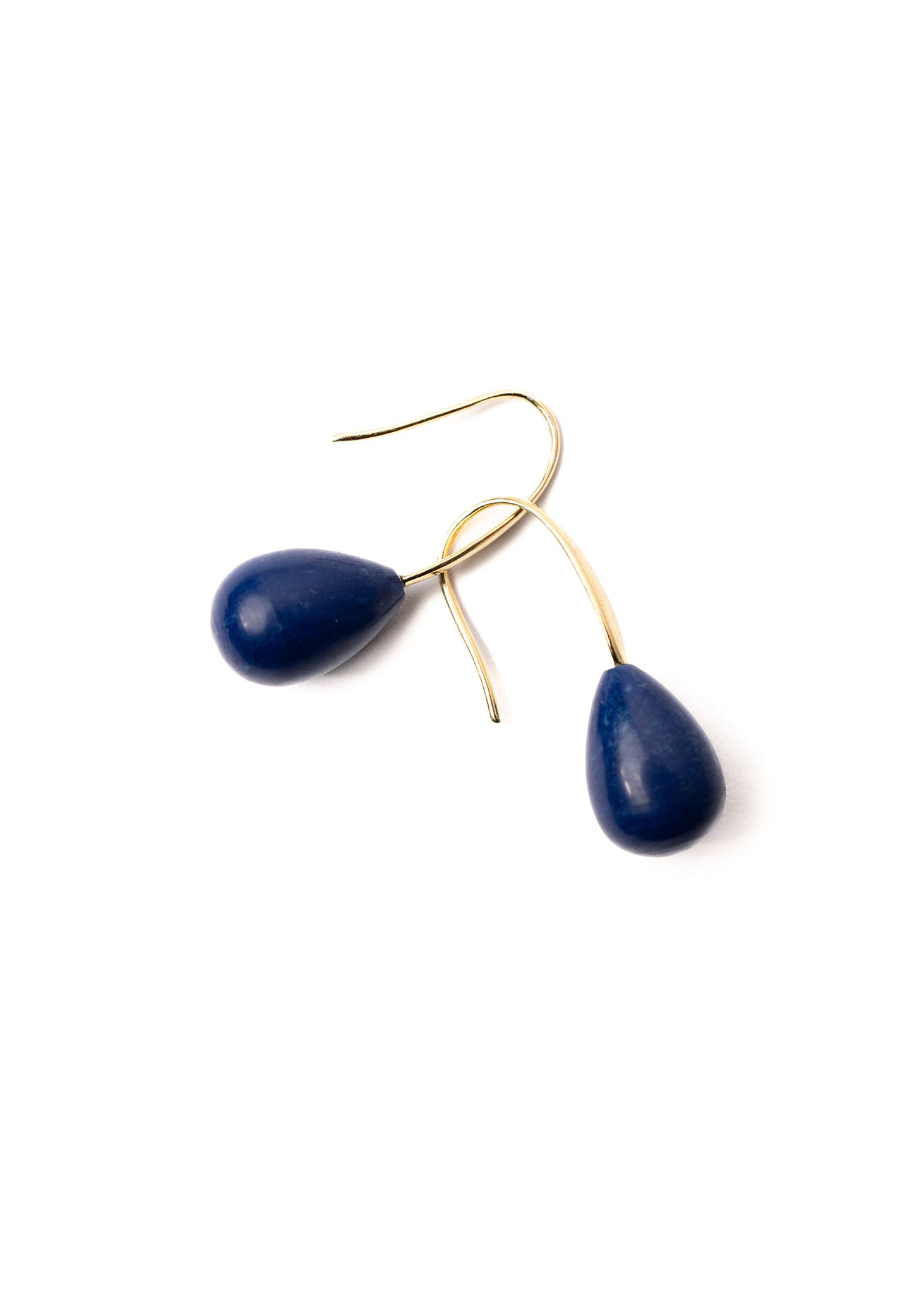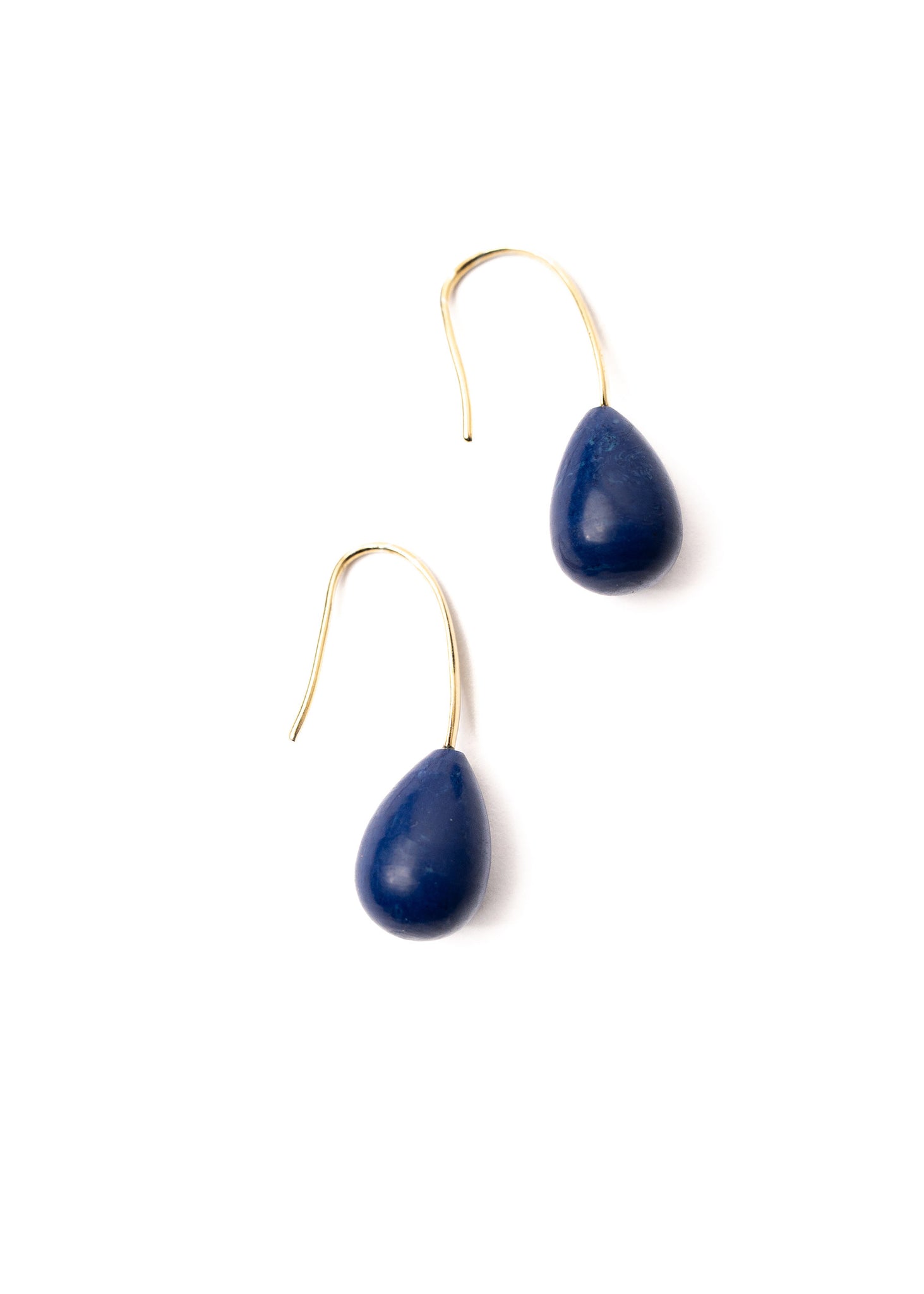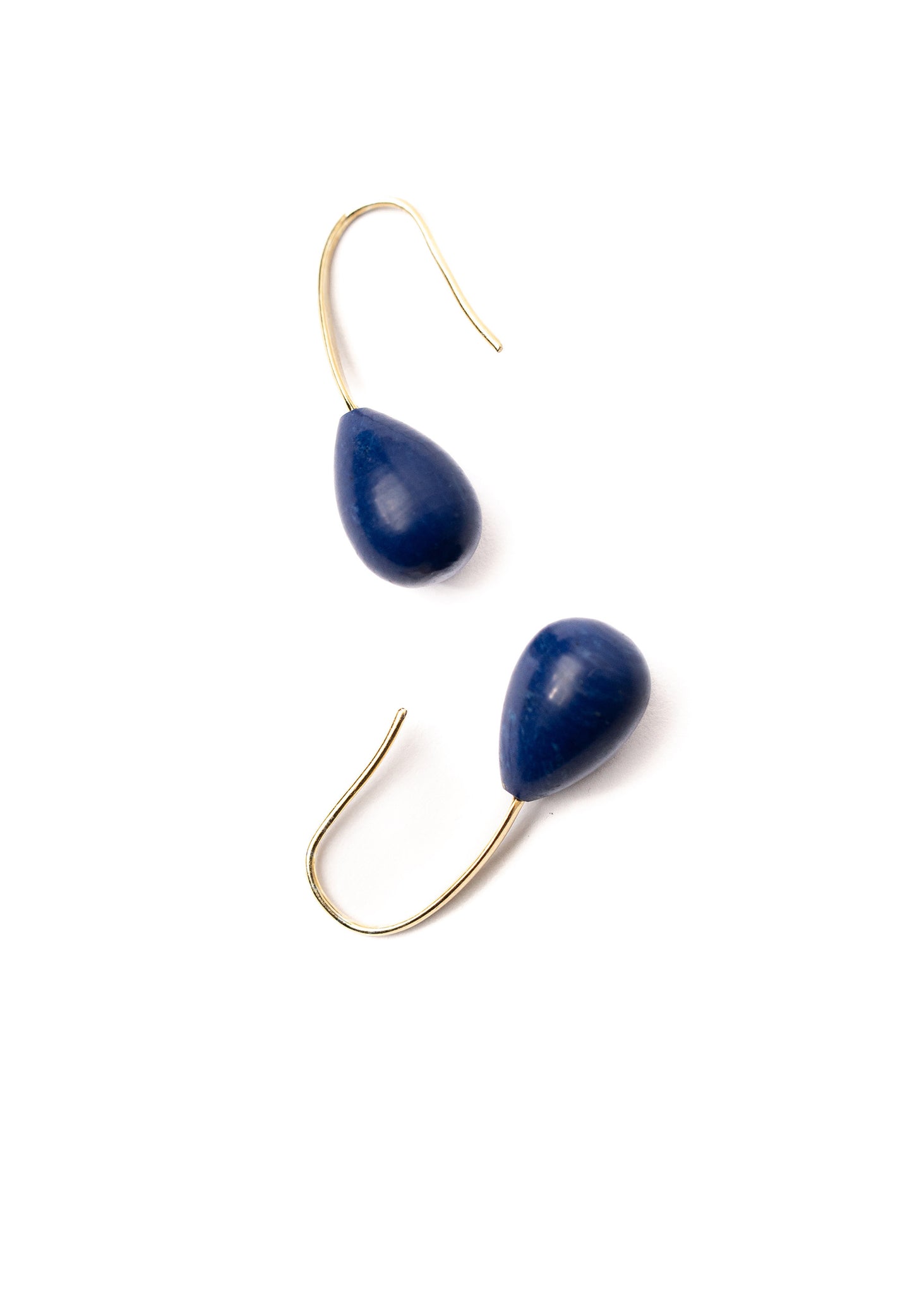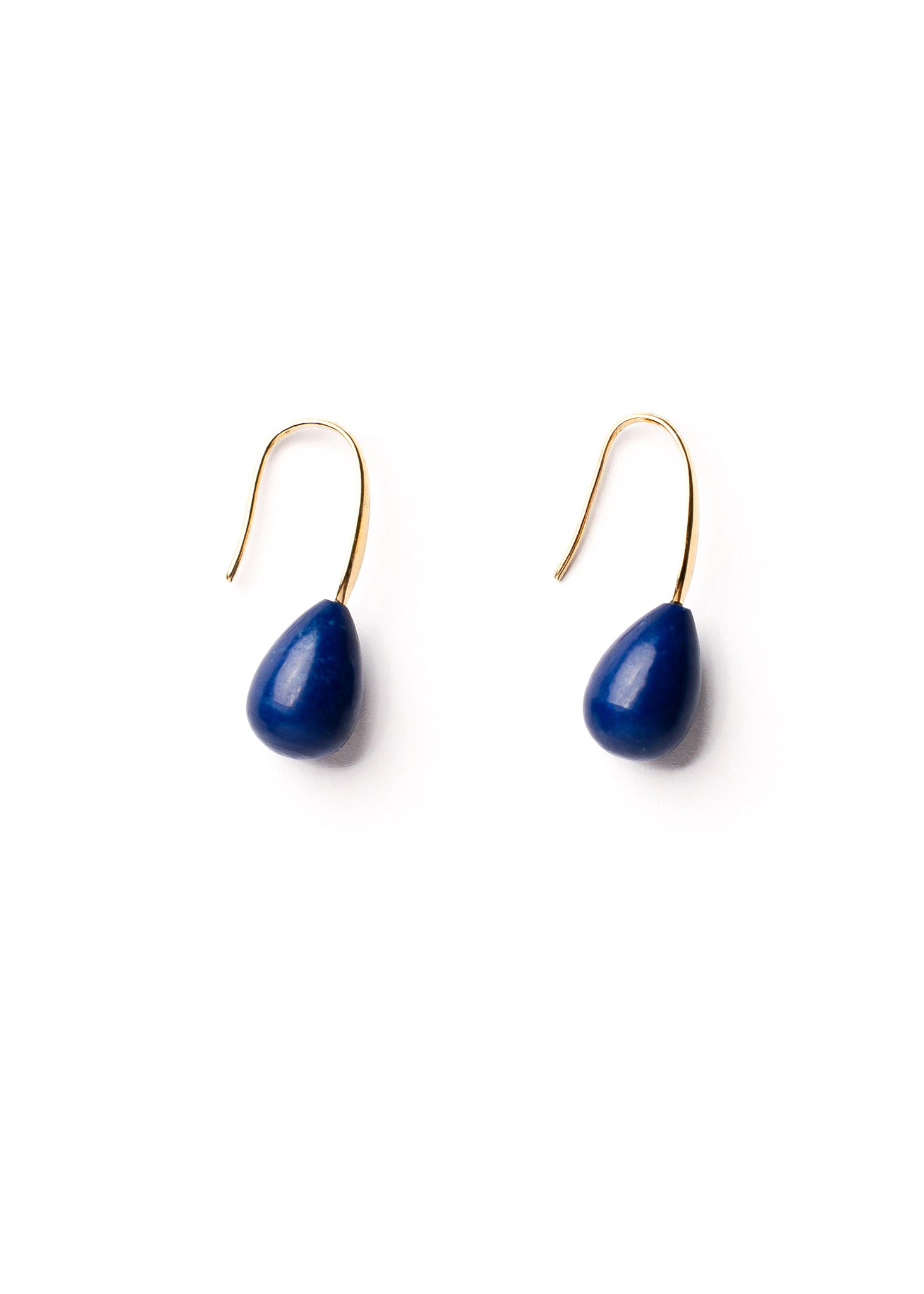 Striking in their deep indigo hue, the Lapis Teardrop Earrings capture a quiet sophistication. The polished lapis lazuli drops are suspended from fine handcrafted golden hooks, their rich color adding a subtle statement to any look. Made in Jaipur, the heart of gemstone artistry, these earrings balance artisanal tradition with contemporary style. A versatile piece to wear every day or gift to someone special.