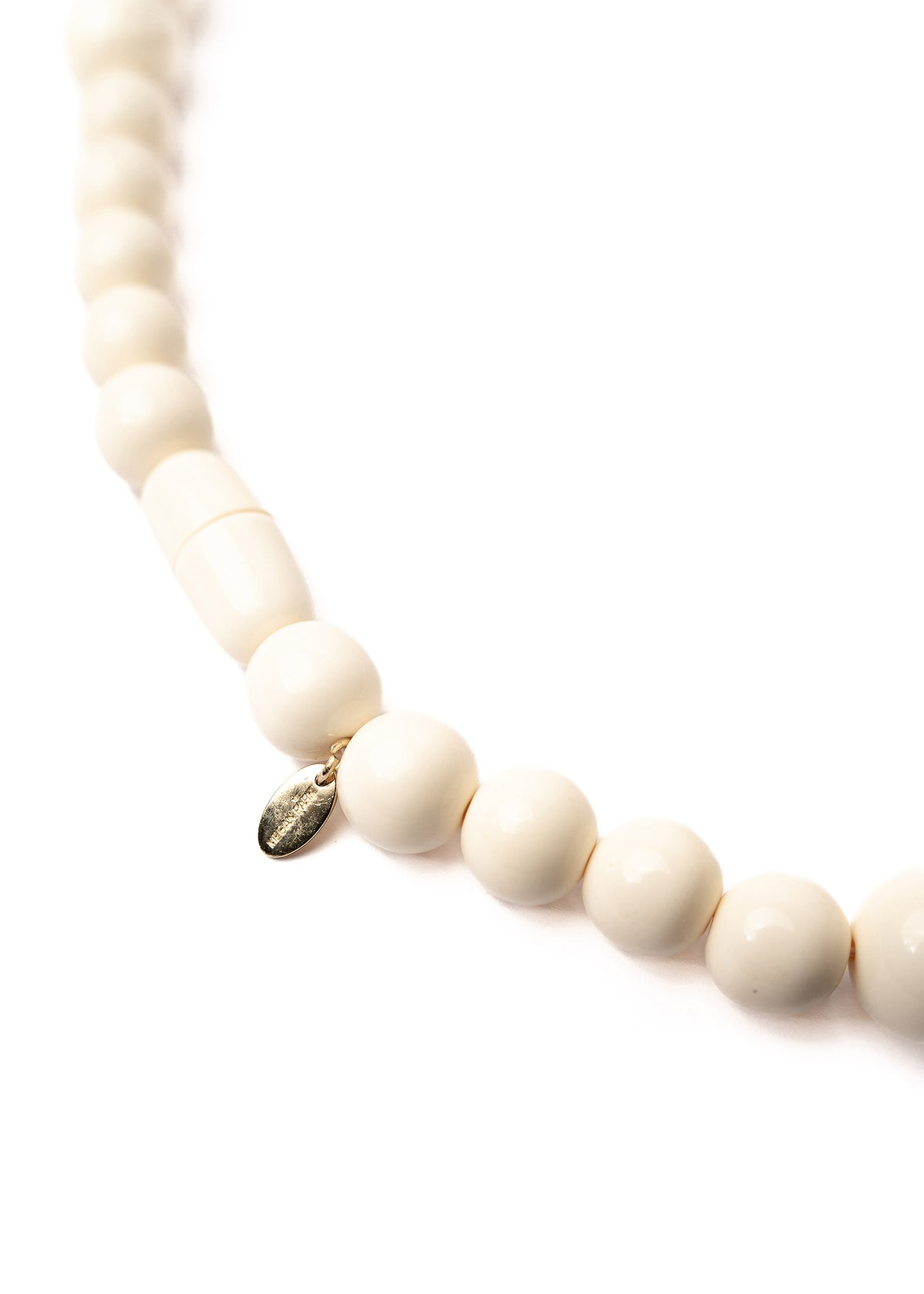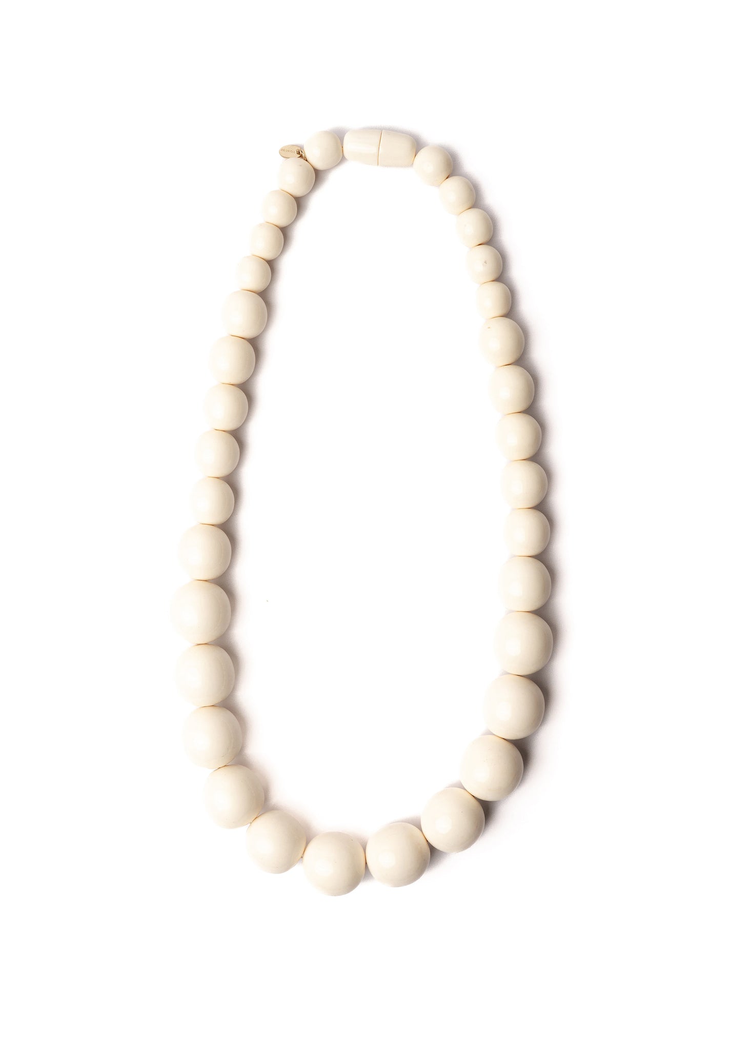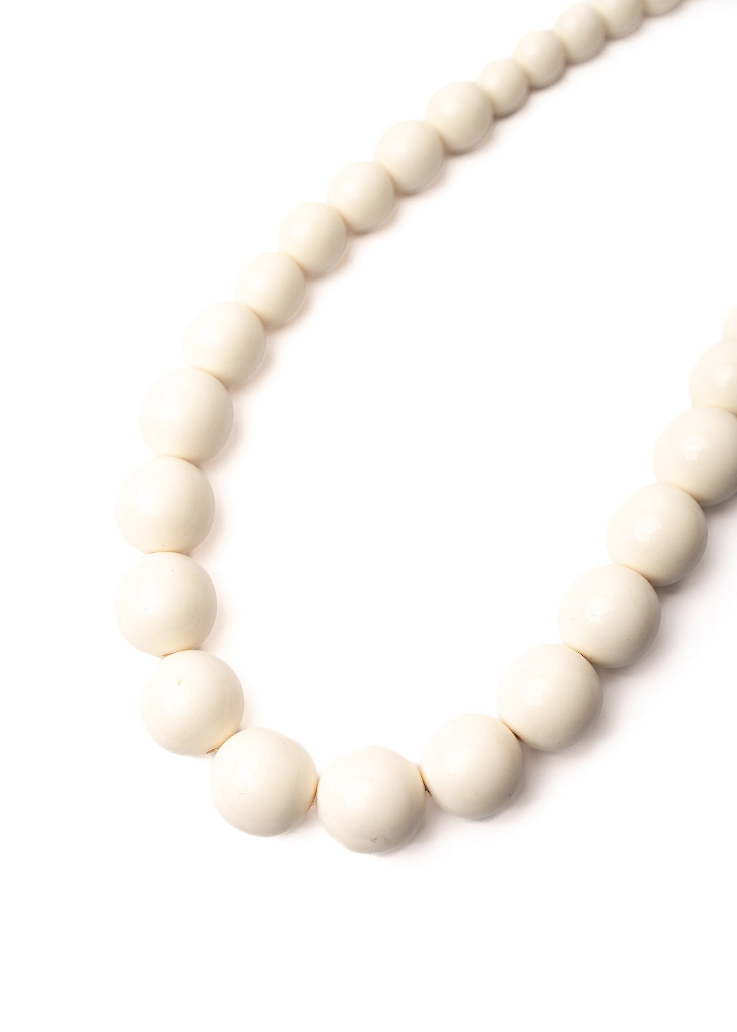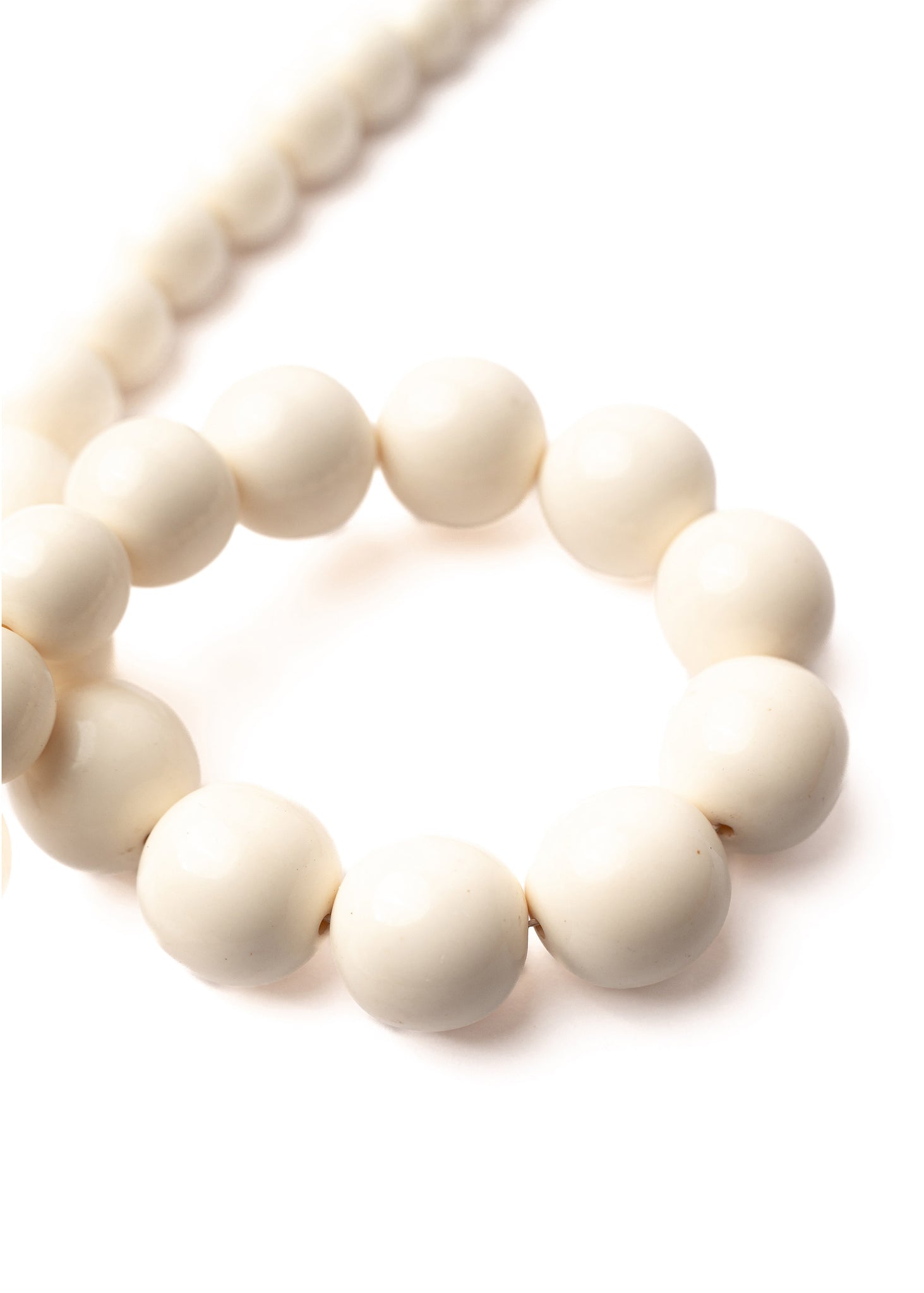 Bold and contemporary, the Ivory Resin Bead Necklace is designed to elevate your summer outfit. Graduated in size, the beads are made from a gorgeous tactile resin; each bead is hand-polished before being strung and secured by a clever invisible screw fastening lock. Effortlessly eye-catching — wear with your favourite MEGAN PARK outfit this summer or style simply with a tee for an easy, everyday statement.