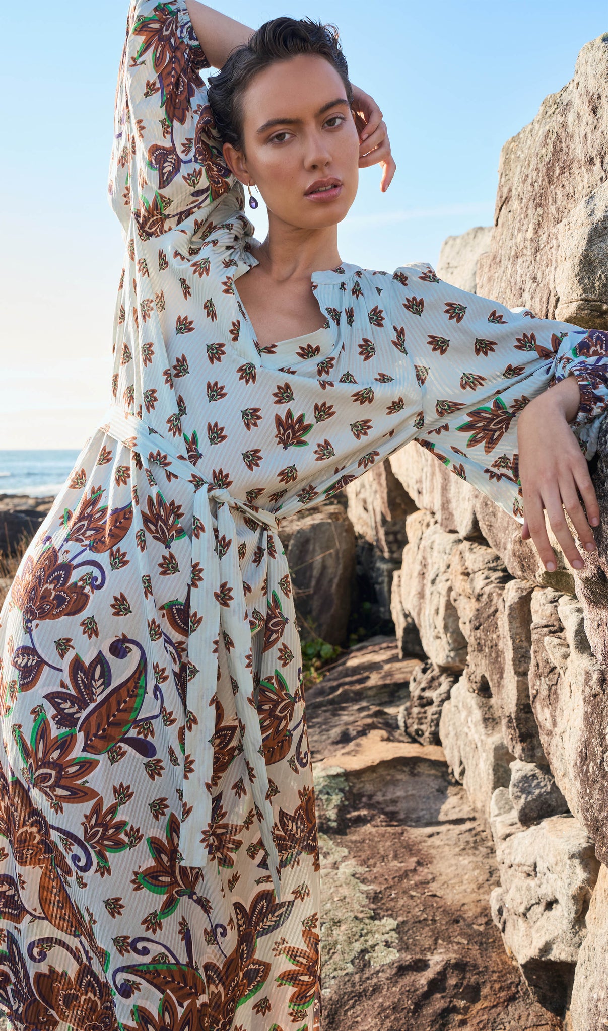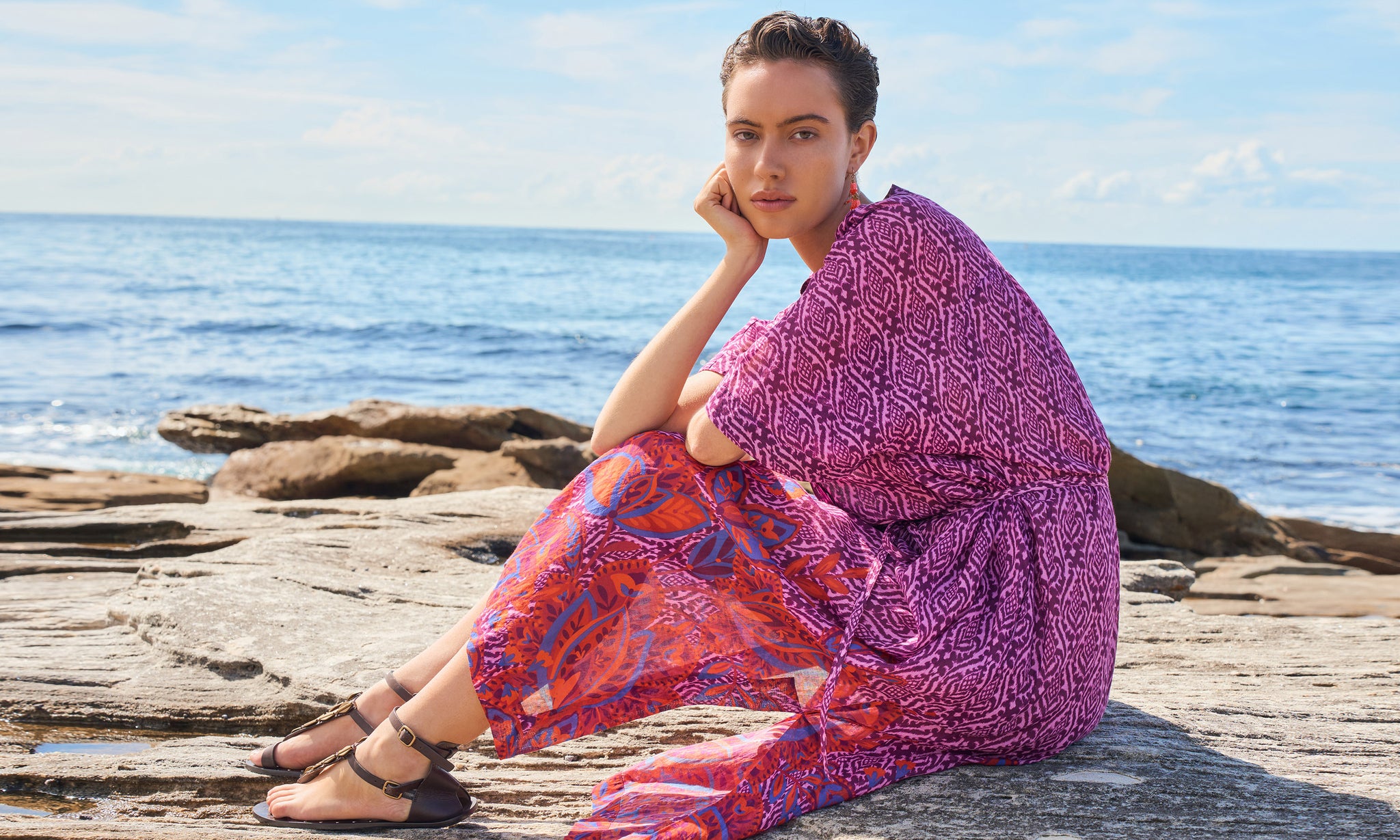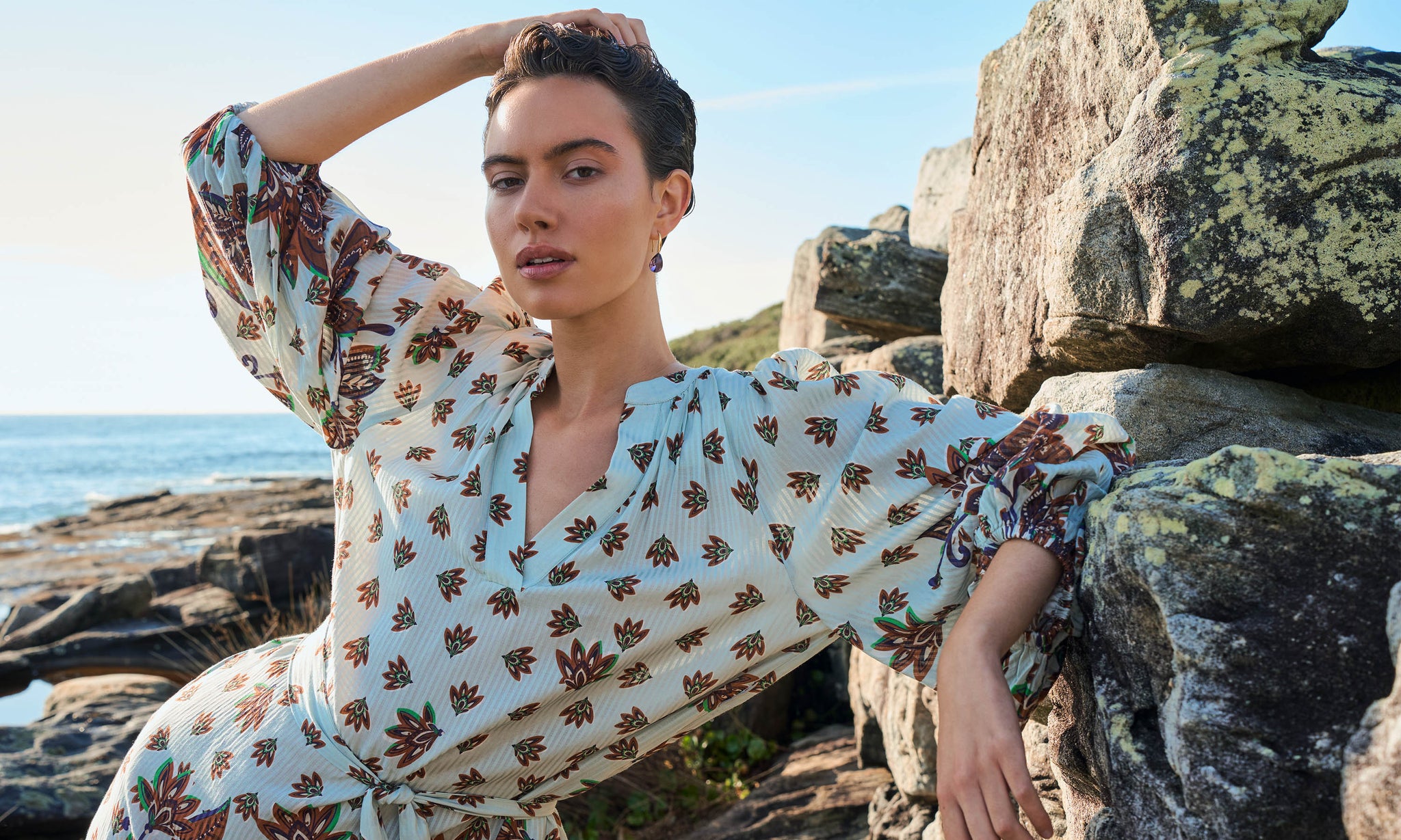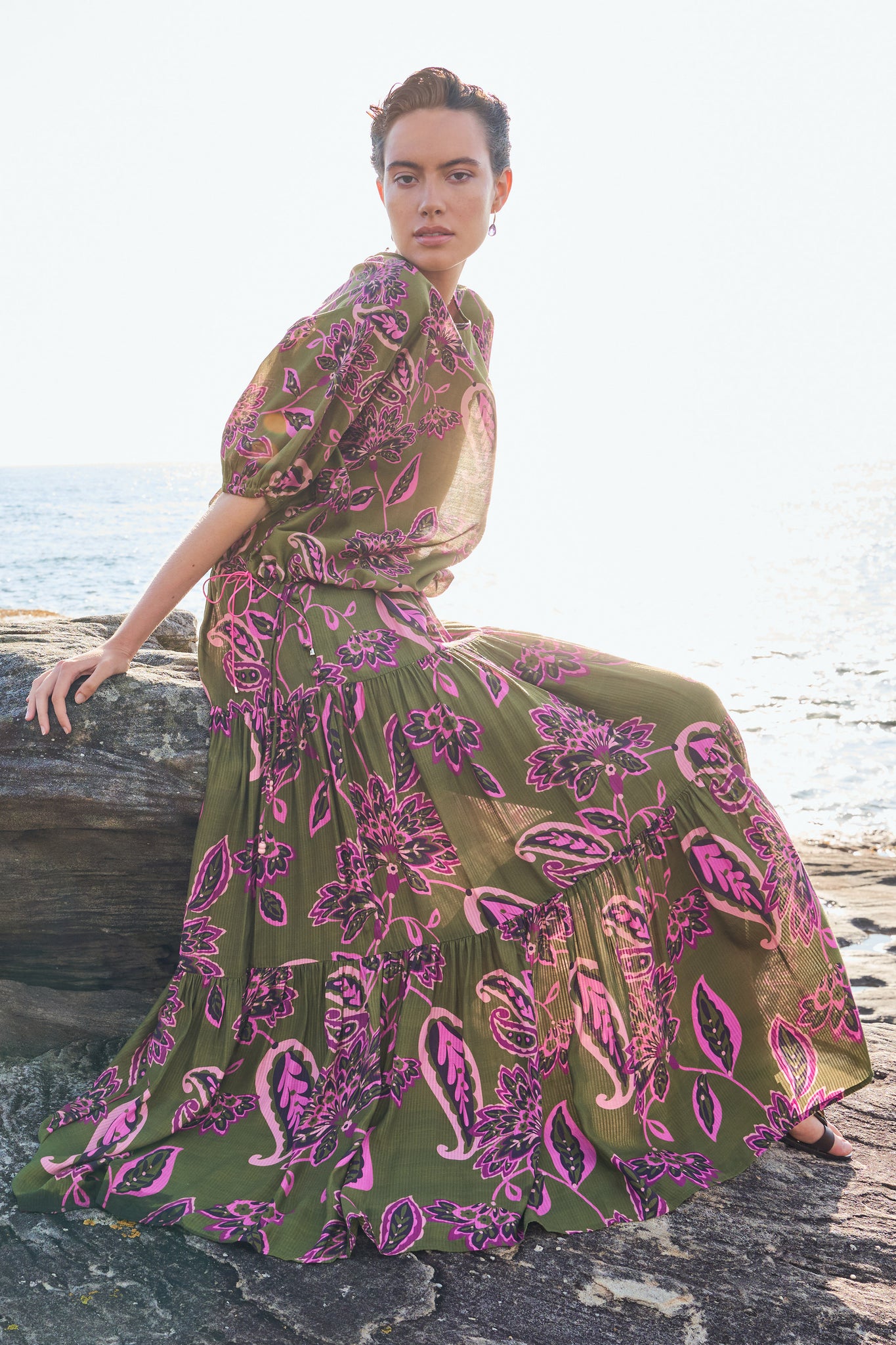 A luminous return to joy. Spring Summer 25 welcomes a renewal of lightness, wrapped up in folkloric prints, earth tones that blossom into vibrant sun-drenched hues, and the memories of long, unhurried summers. This season, vintage island florals and stylised motifs are reimagined through modern geometrics, airy blooms, hand-crochet edges and textured embroidery.