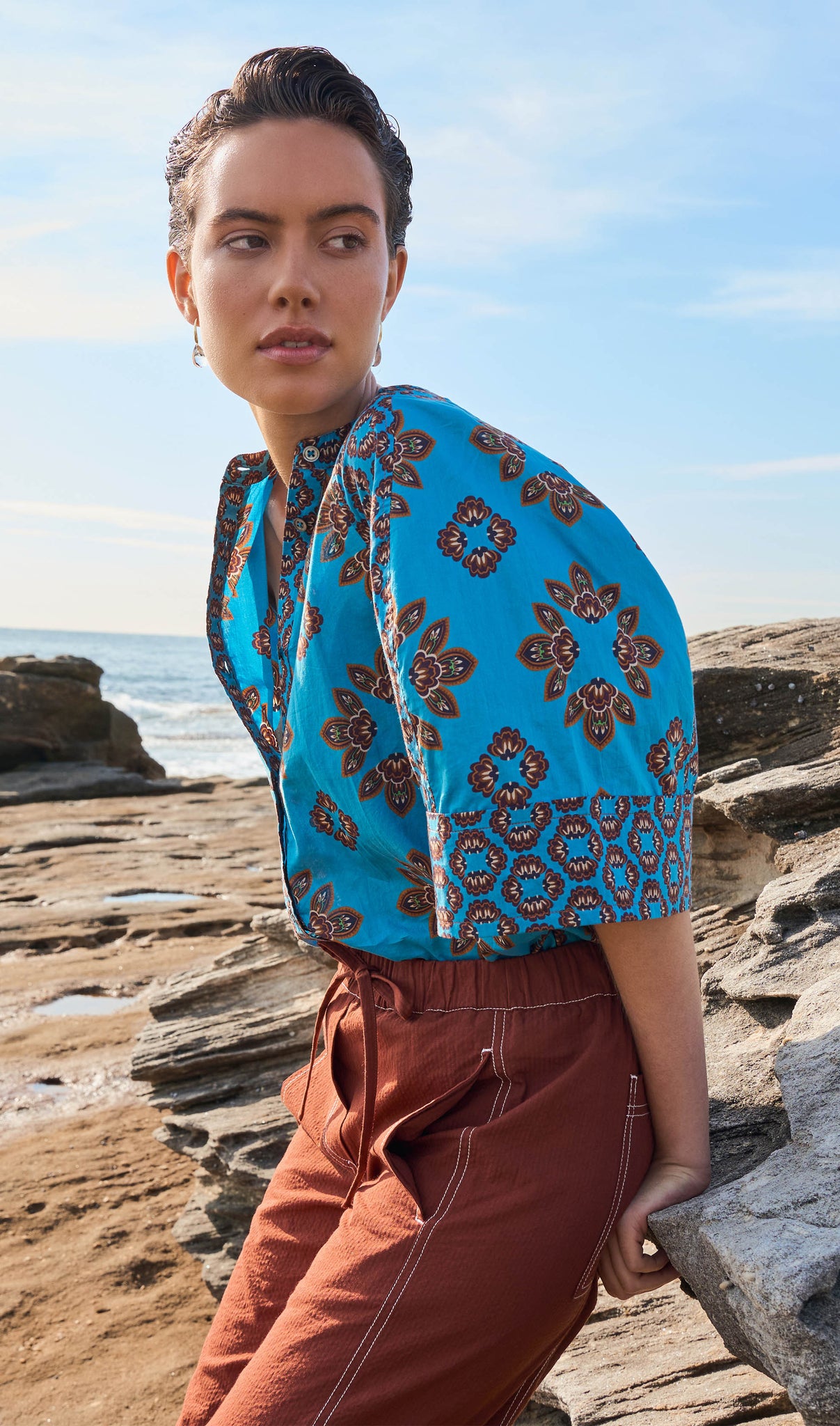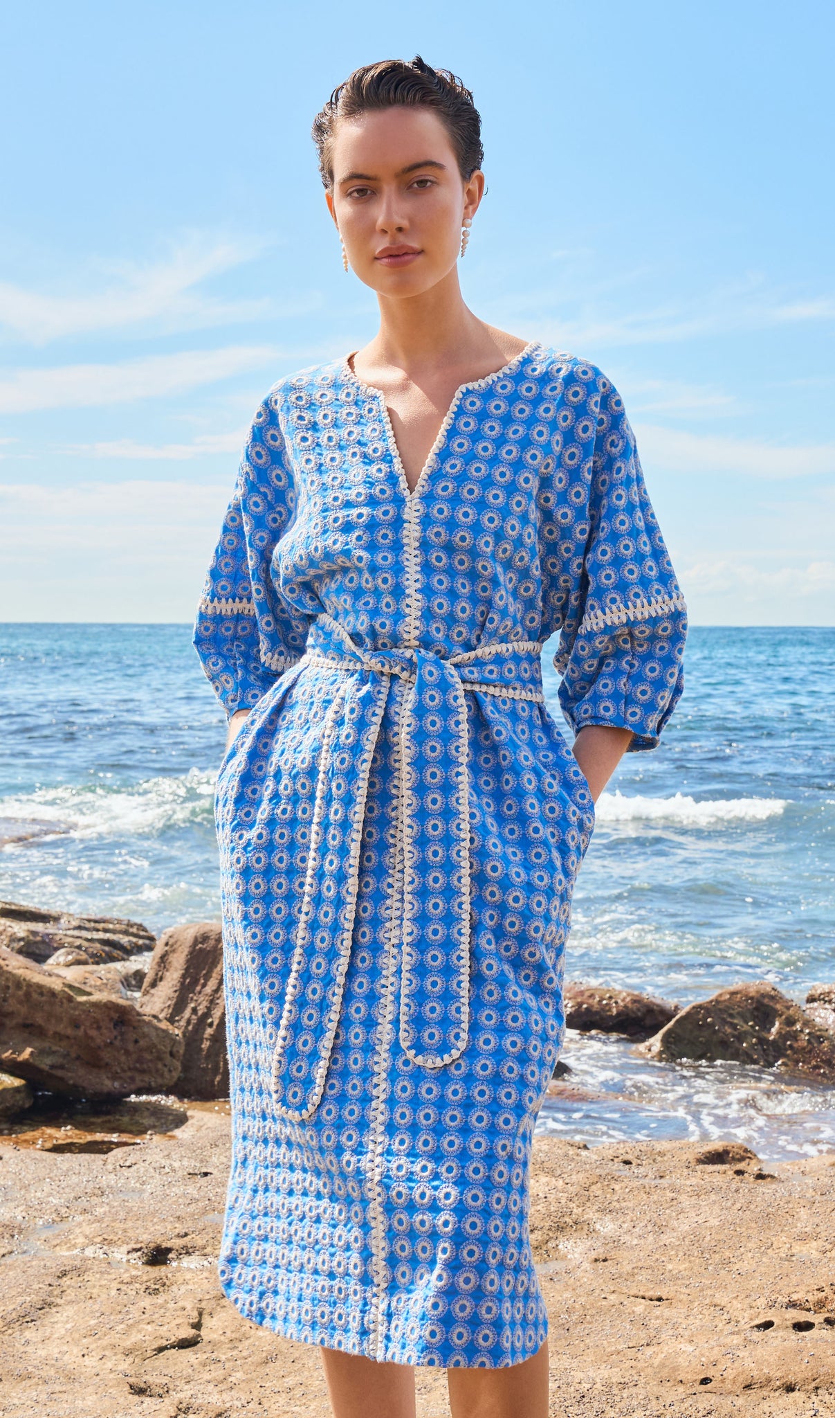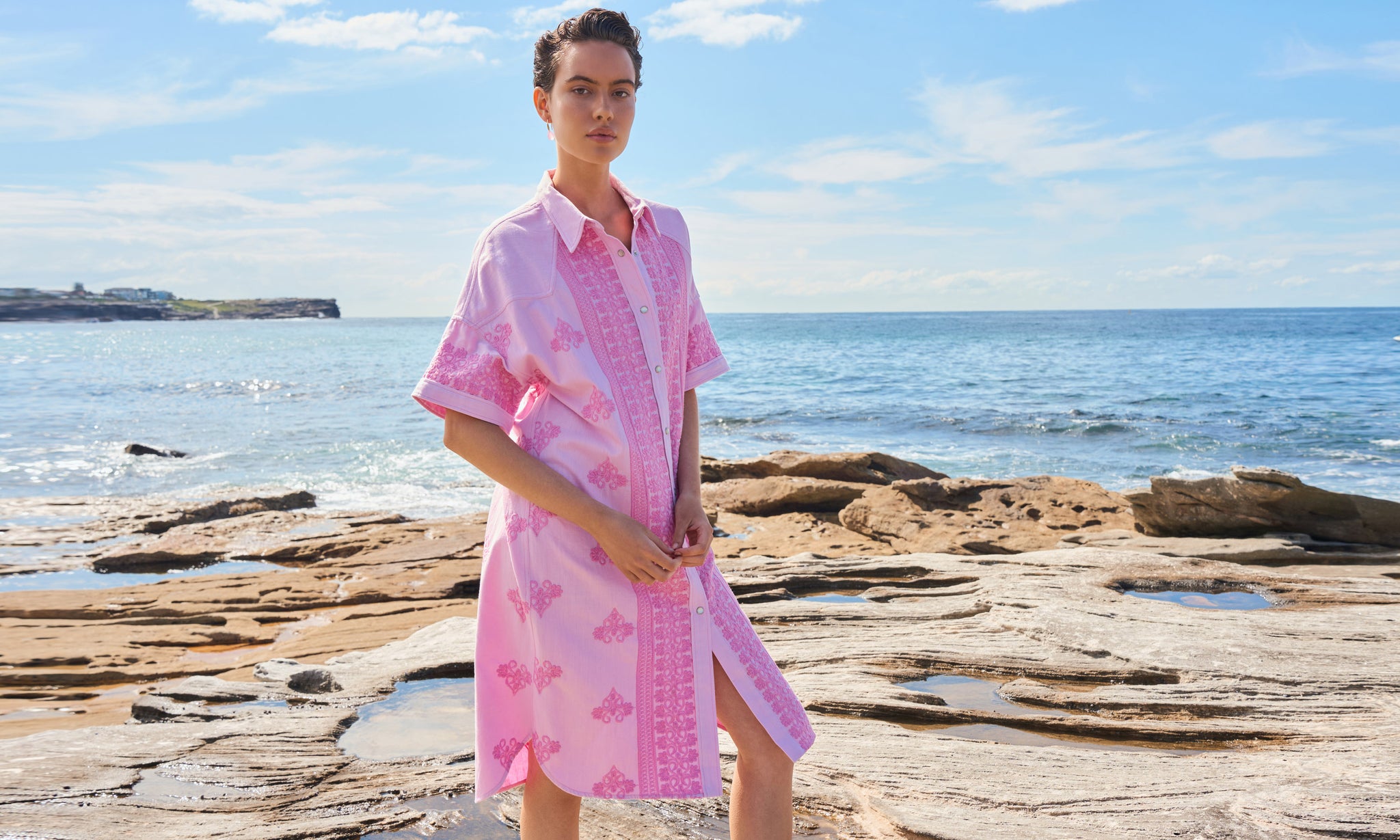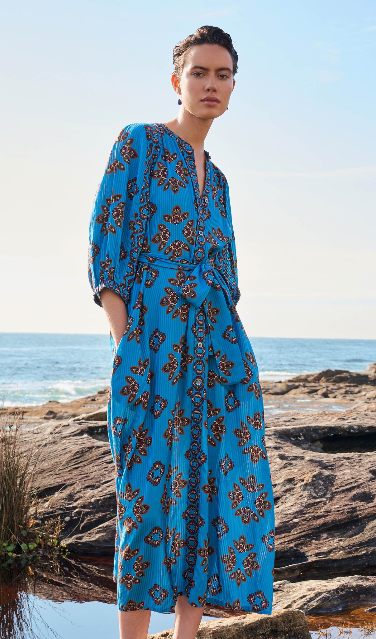 A luminous return to joy. Spring Summer 25 welcomes a renewal of lightness, wrapped up in folkloric prints, earth tones that blossom into vibrant sun-drenched hues, and the memories of long, unhurried summers. This season, vintage island florals and stylised motifs are reimagined through modern geometrics, airy blooms, hand-crochet edges and textured embroidery.