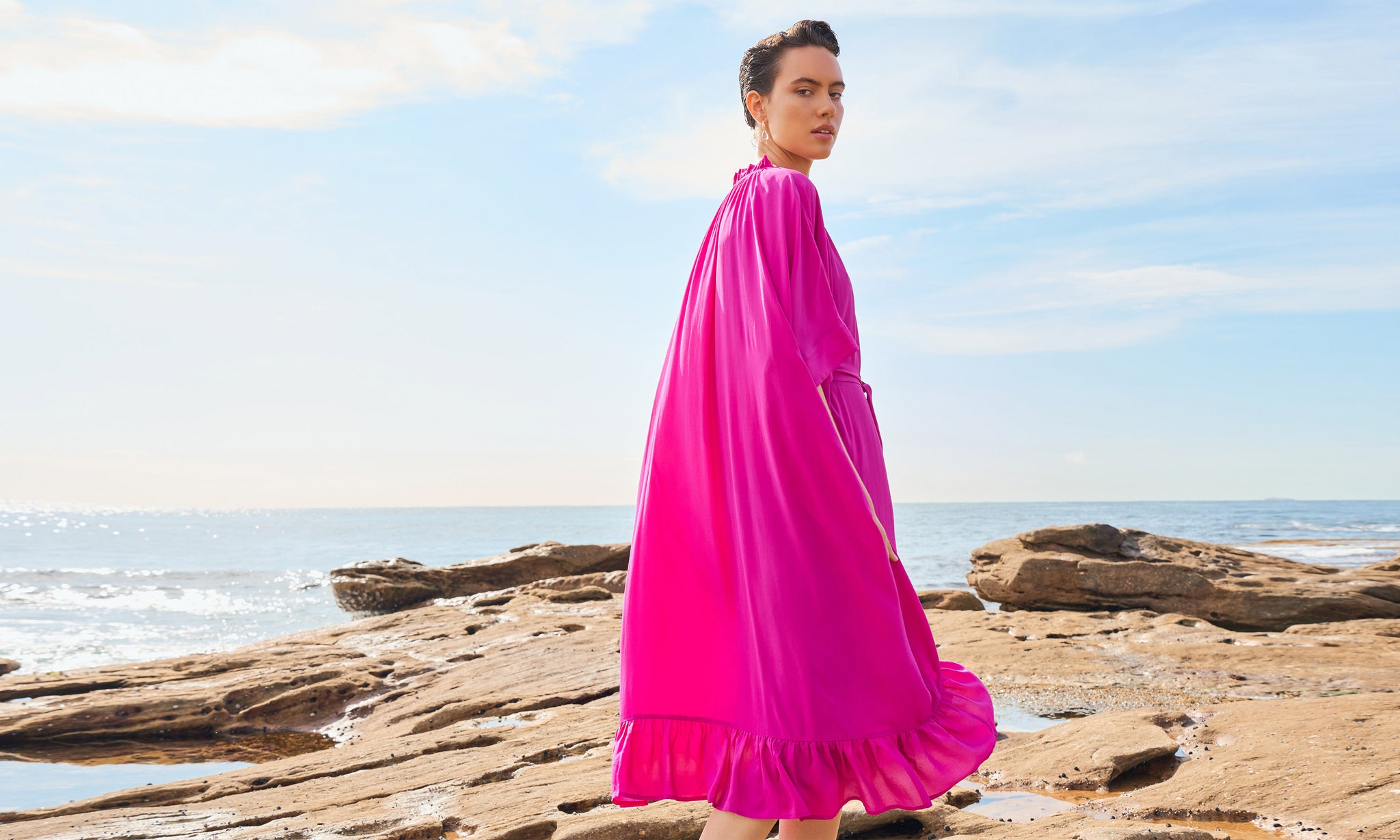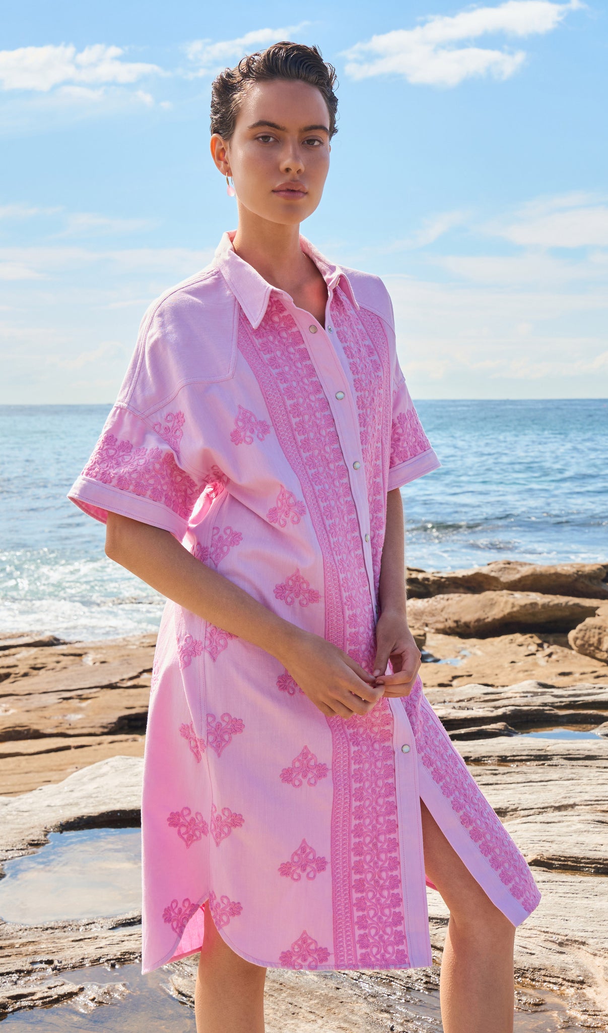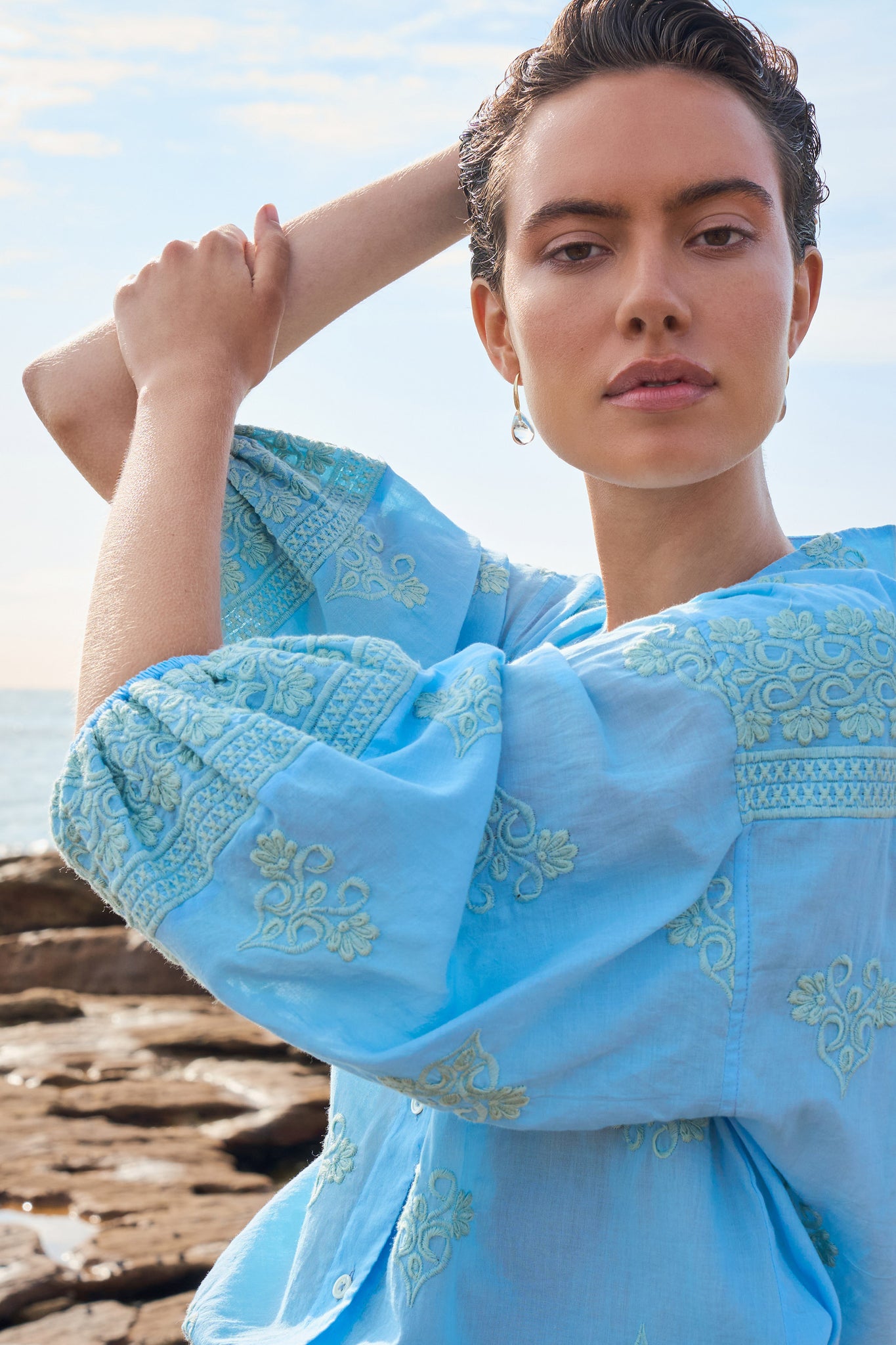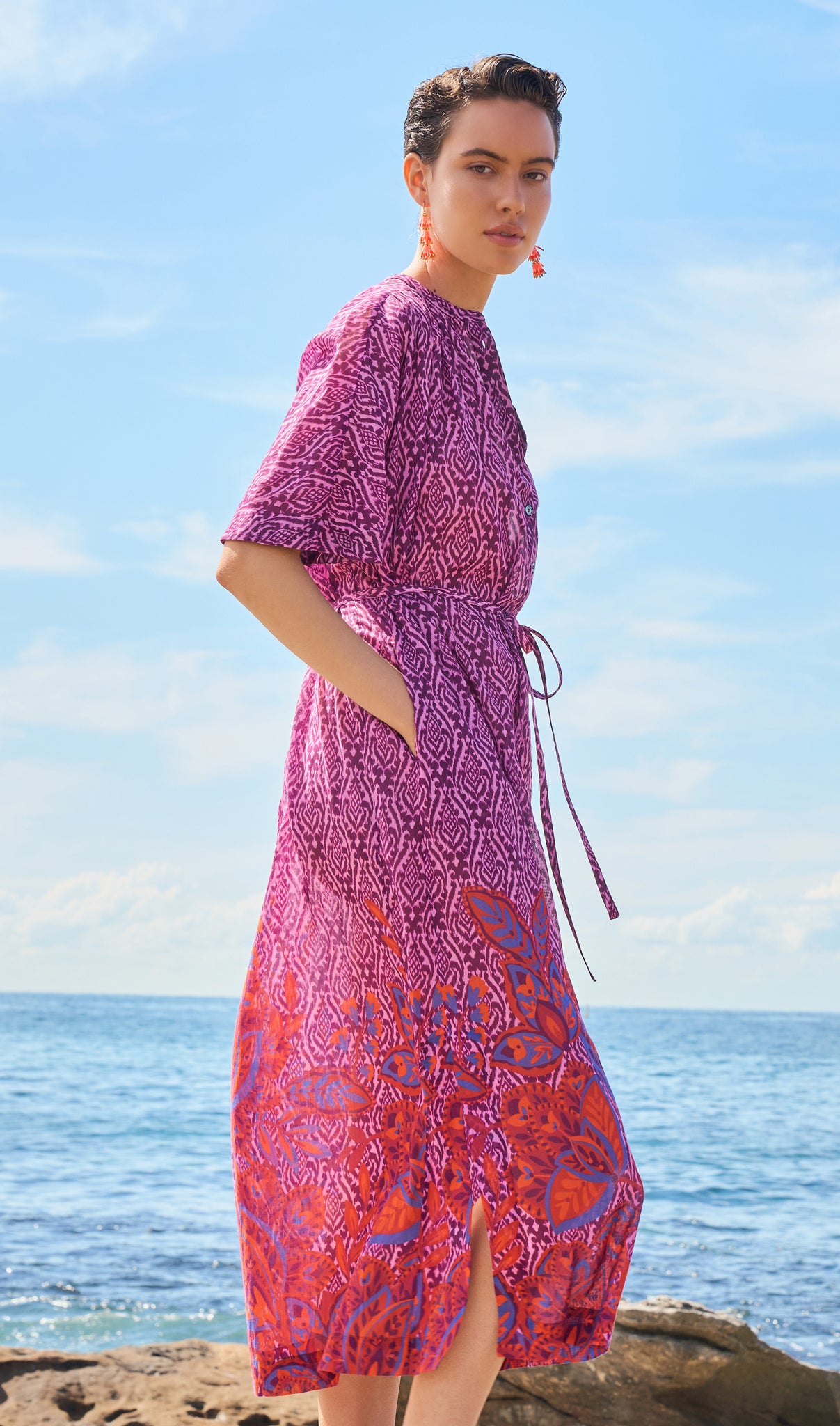 A luminous return to joy. Spring Summer 25 welcomes a renewal of lightness, wrapped up in folkloric prints, earth tones that blossom into vibrant sun-drenched hues, and the memories of long, unhurried summers. This season, vintage island florals and stylised motifs are reimagined through modern geometrics, airy blooms, hand-crochet edges and textured embroidery.